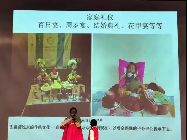 1.1班金熙霖(Peter)妈妈耐心地讲解了韩国孩子百日宴等家庭礼仪和韩国家庭的传统文化、服饰和食物等。