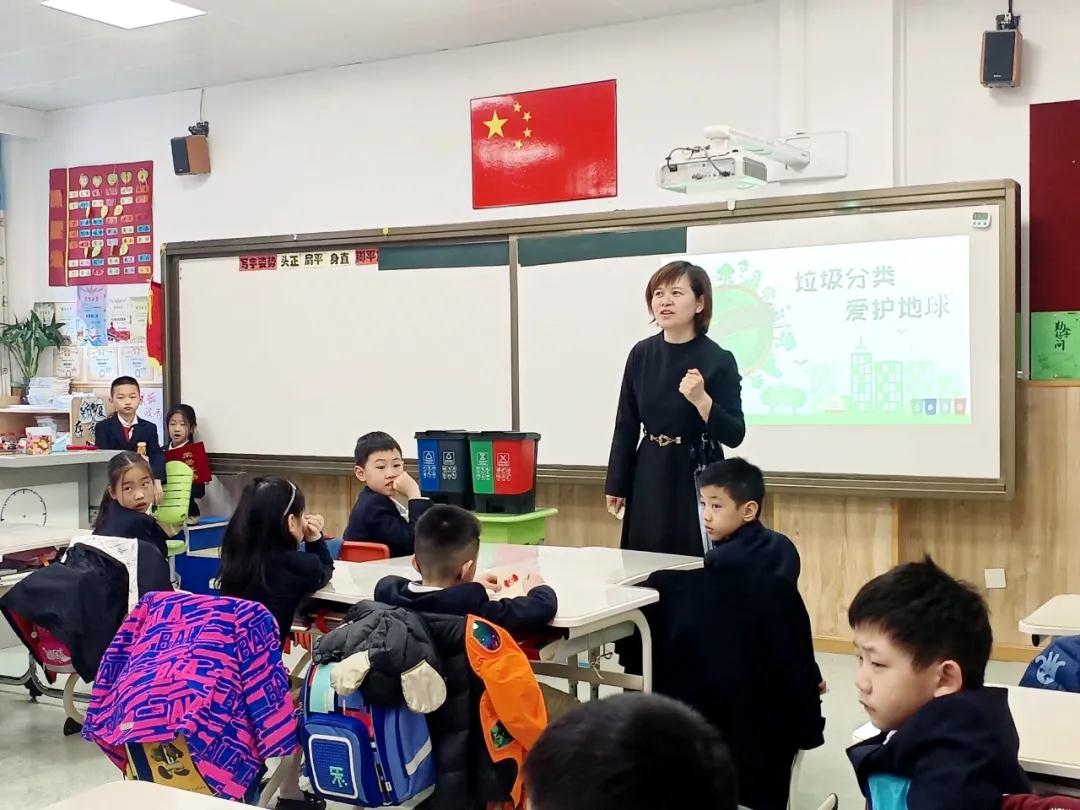 4月8日上午8:45,小学部2.7班班主任史佳老师上了一节生动有趣的“垃圾分类,保护地球”主题班会示范课,各年级班主任老师到场听课。