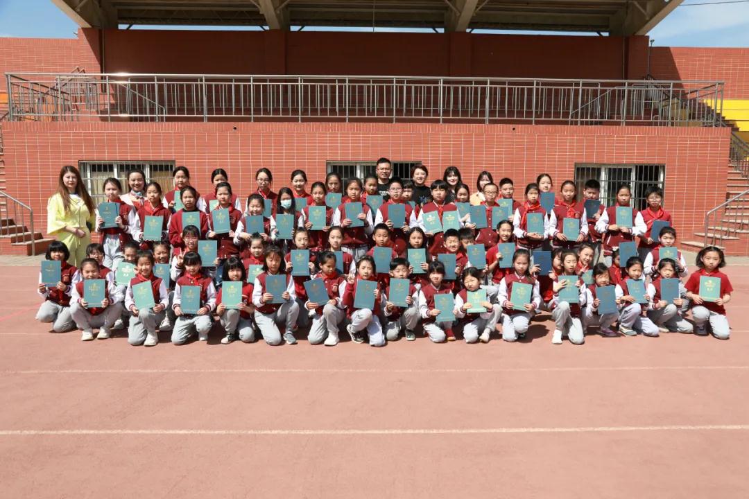 ▲周一升旗仪式上的颁奖合影