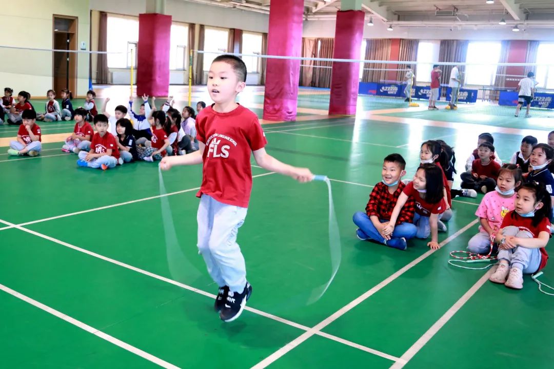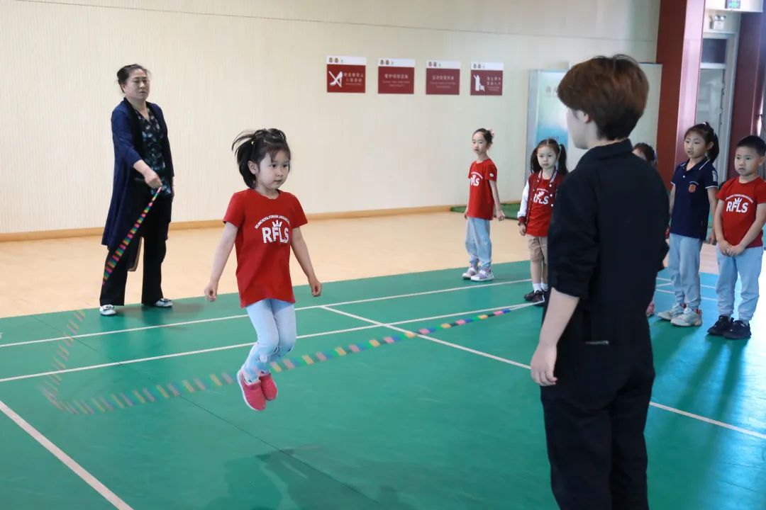 5月28日,北京王府外国语学校乒羽中心欢声笑语,热闹非凡,KG学部跳绳比赛总决赛正在进行中。