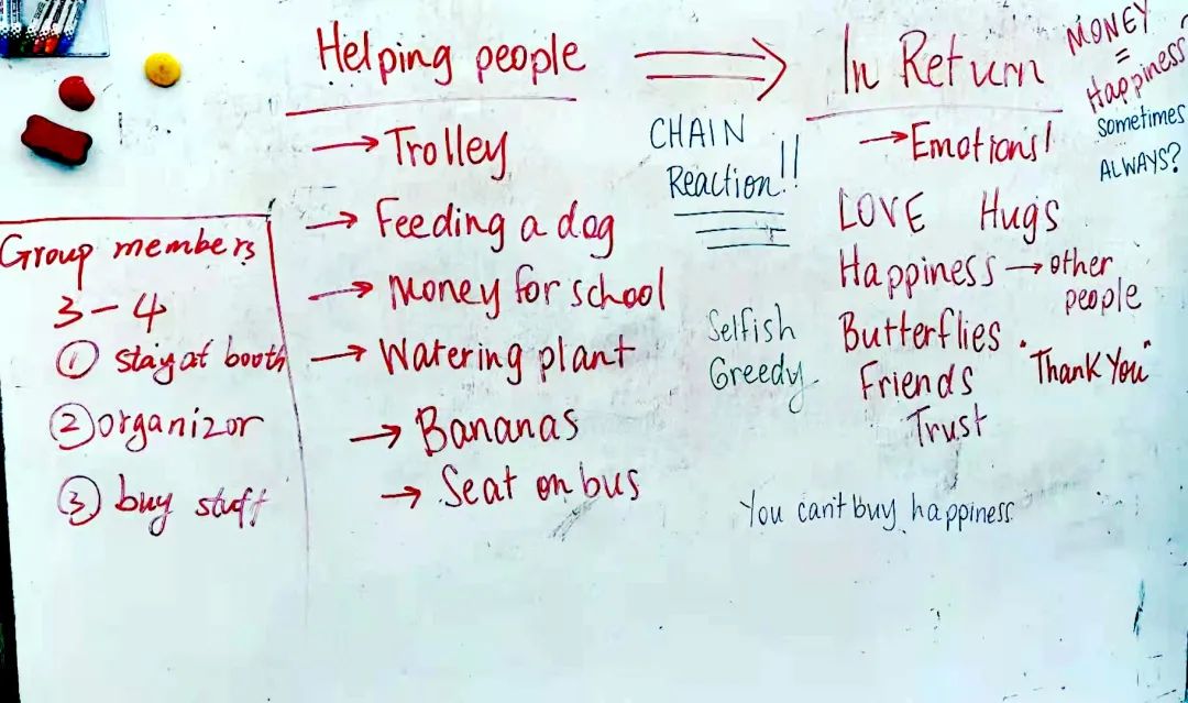 孩子们慢慢地懂得、接受并且又重新恢复了参加活动的动力。这一次,他们想多卖点钱,多贡献一点爱。