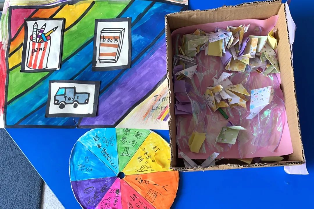 为了提高客户的体验感,在制作抽奖箱时,孩子们特意找老师做了试验。