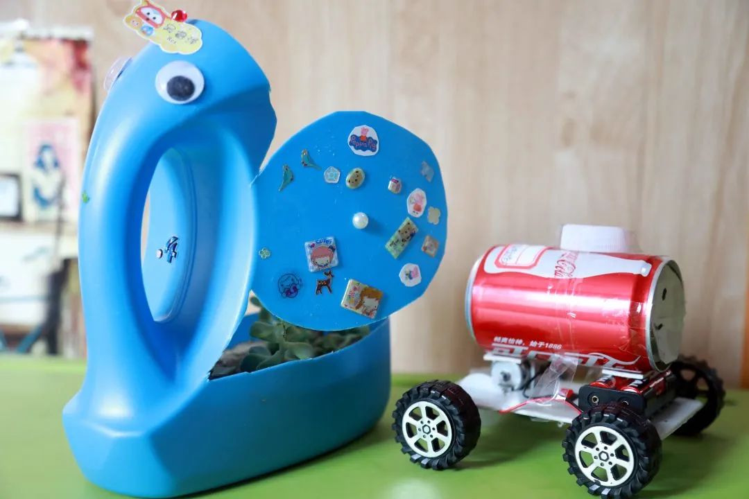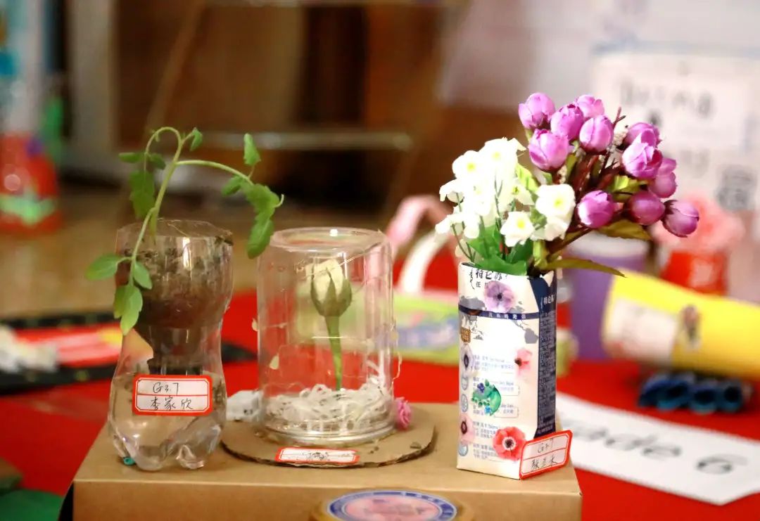 在制作过程中,孩子们更多地了解到当前的环境问题,并深入思考自己能为保护地球做出哪些贡献。一件件精美的手工作品,展现出孩子们无穷的创造力。经过评选,同学们在每个班级中选出3件他们认为最棒的手工作品,当然,每一件作品都收到了大家的赞赏。他们真切地感受到,即使是小小的努力,也能对身边的环境甚至世界产生巨大的影响。