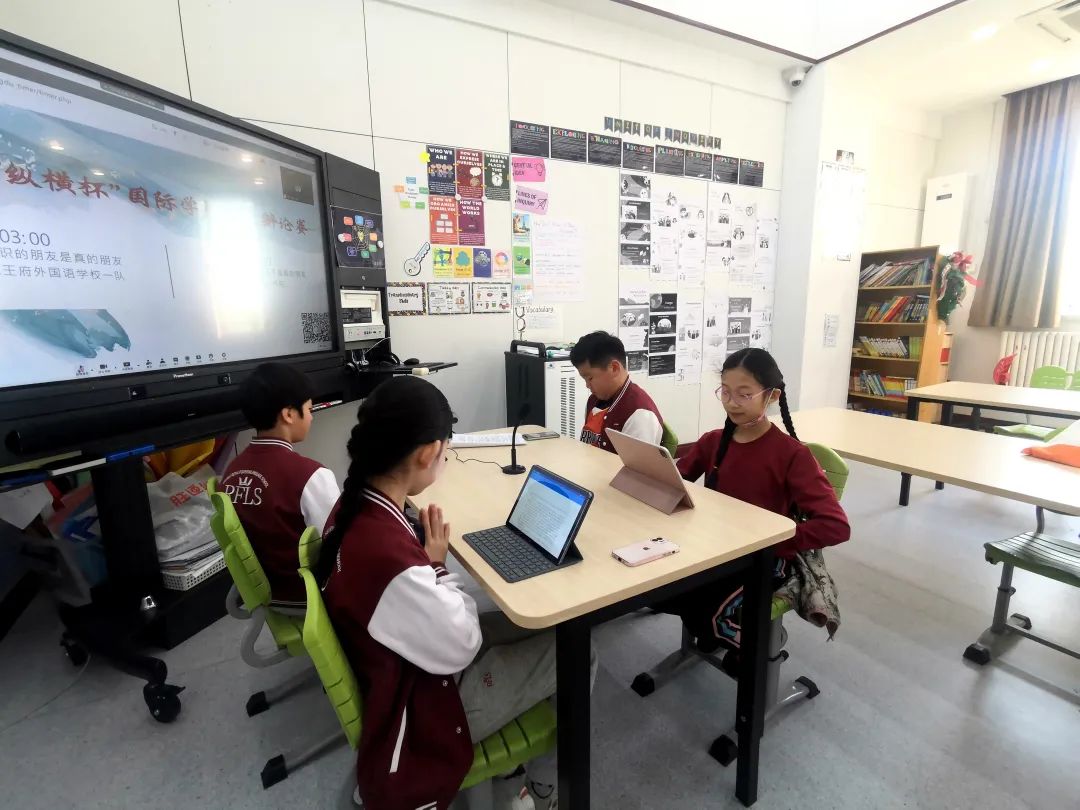 双语部五年级的学生分别参与了2020年11月、2021年4月举行的比赛,10位同学组成了两支辩论小分队,一队:蒋凯迪,严子涵,柴星宇,王隆,王思语;二队:张业欣,王维宁,熊一南,杨文问,姚玥伊。