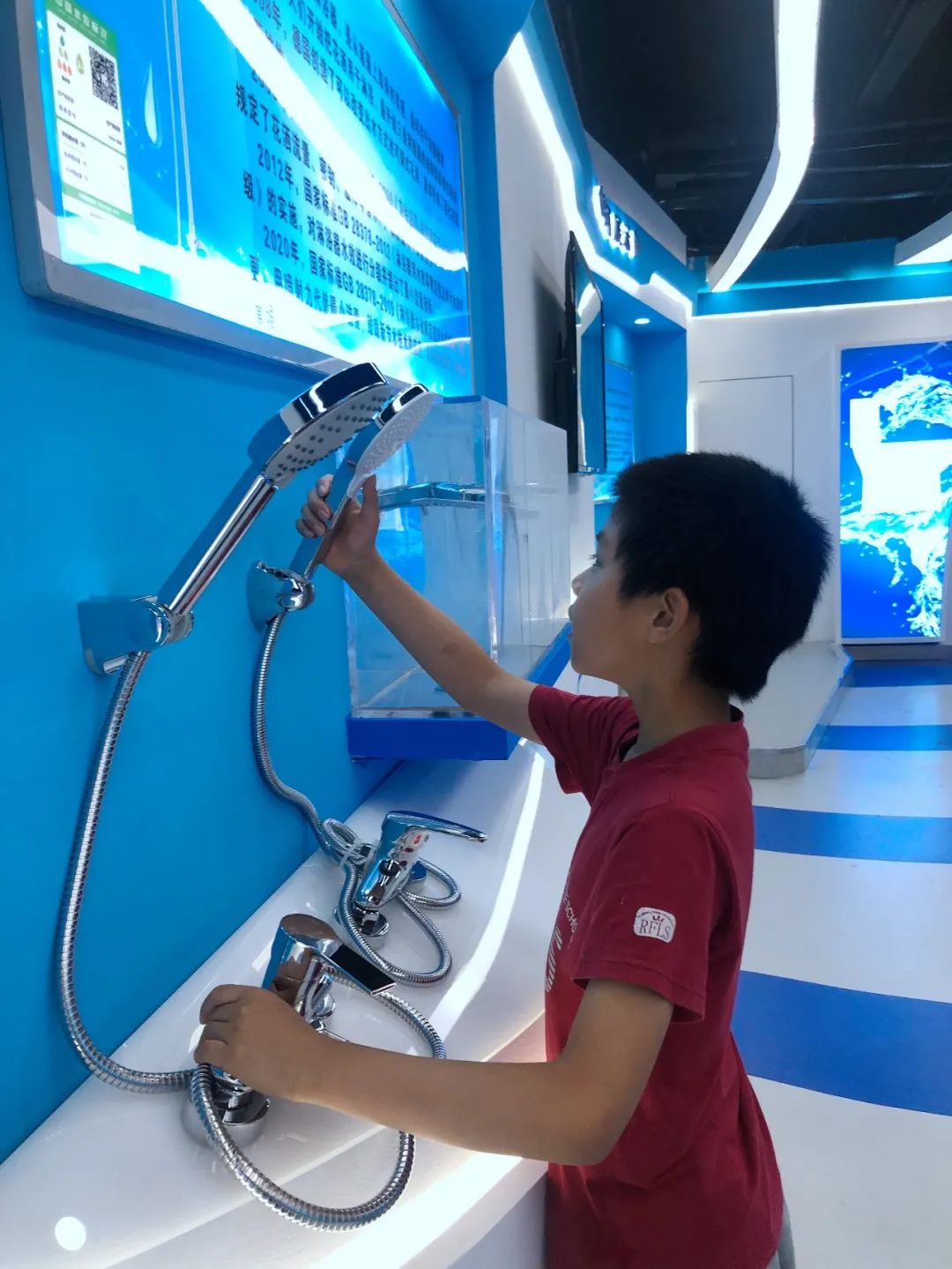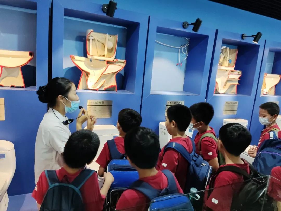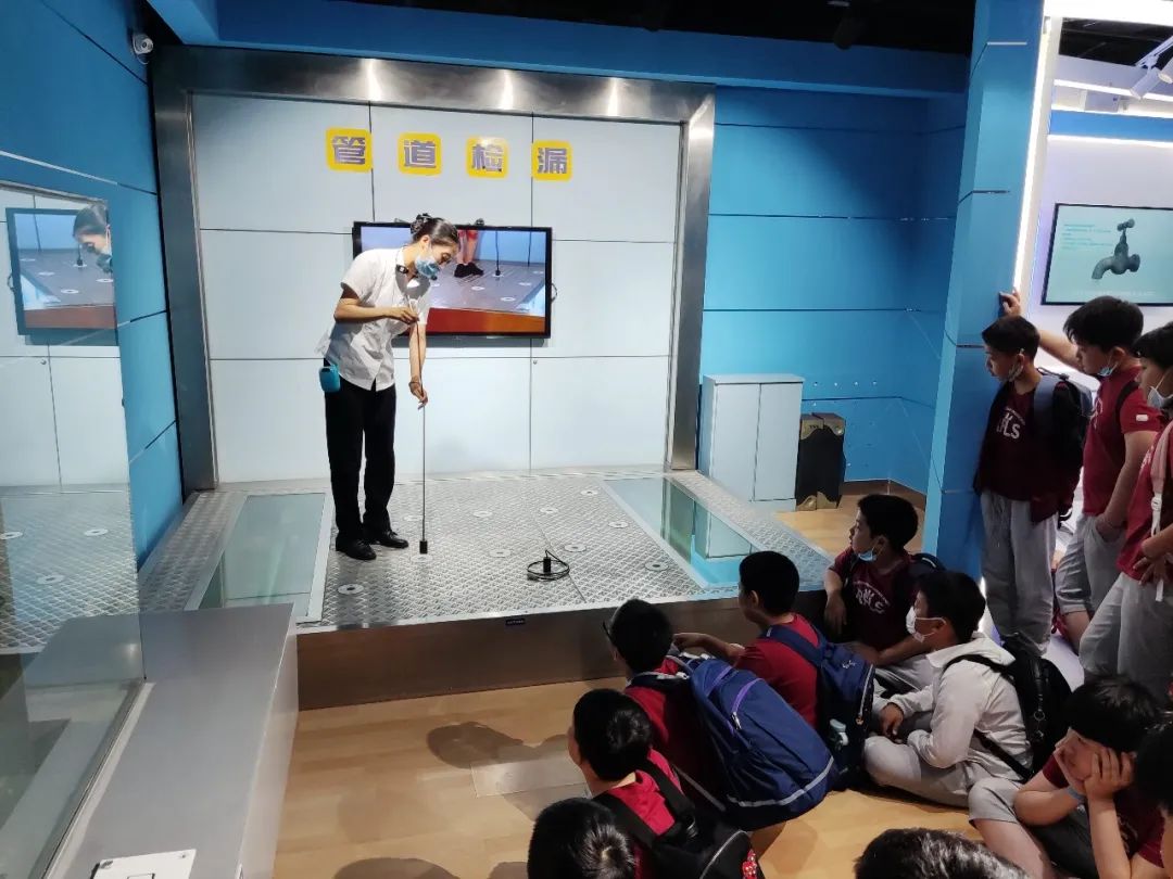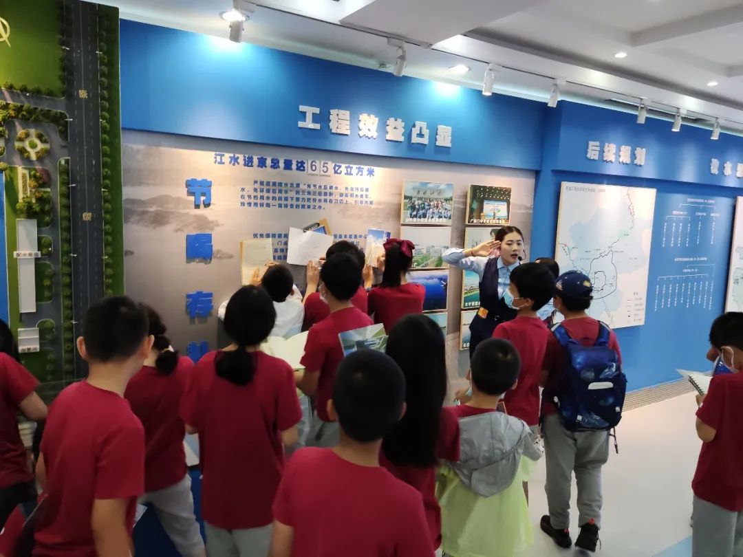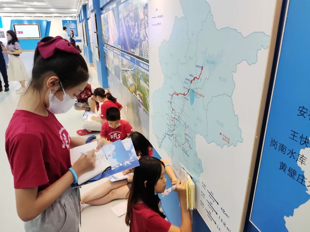 结束在南水北调调节池的参观游览后,同学们来到北京节水展馆。在讲解员的引导下,对北京城镇居民日常用水情况进行了解。