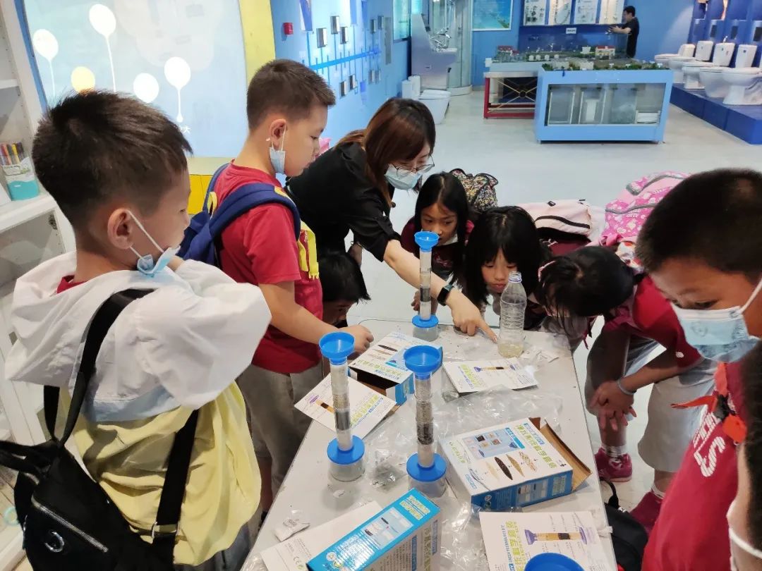 然后,展馆老师为同学们介绍了北京市用水结构和自来水的由来,并由此引出在家庭中和校园里节约用水的方法。
