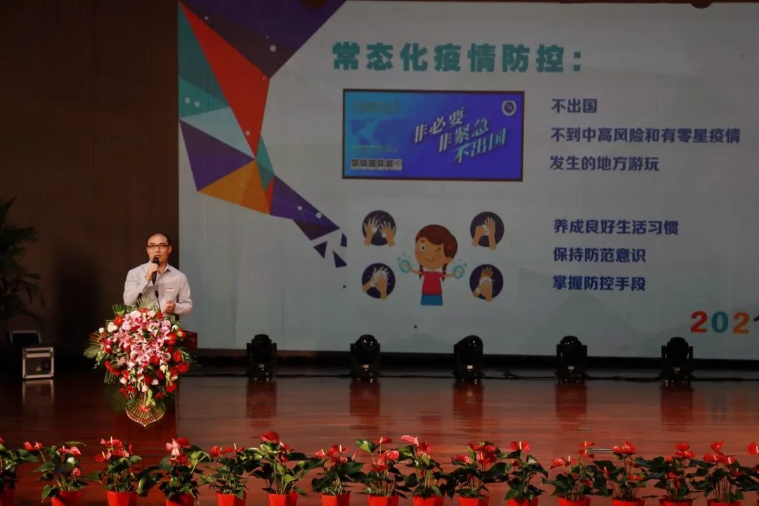 李主任从常态化疫情防控、交通安全、防溺水、防触电、防雷电、防汛,饮食卫生、预防传染病、规范行为习惯、提升文明素养、提升劳动意识和服务意识、心理健康等角度,叮嘱孩子们照顾好自己和家人,开开心心放假去,安安全全返校来。