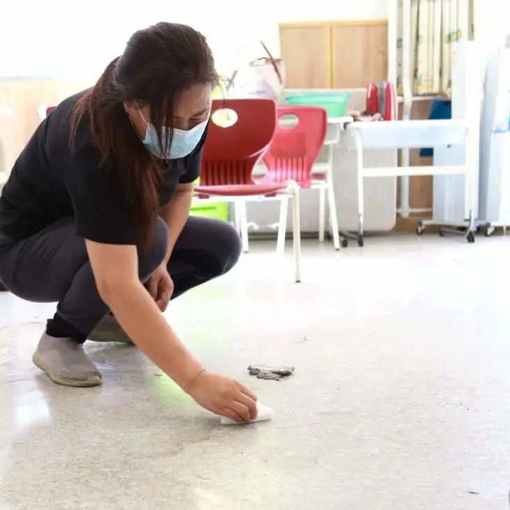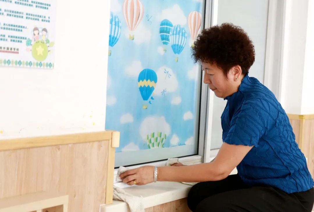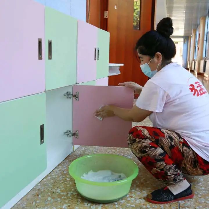 ▲老师们细致消毒,班级卫生拒绝死角科学部署各项工作推进有条不紊