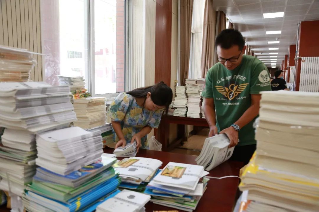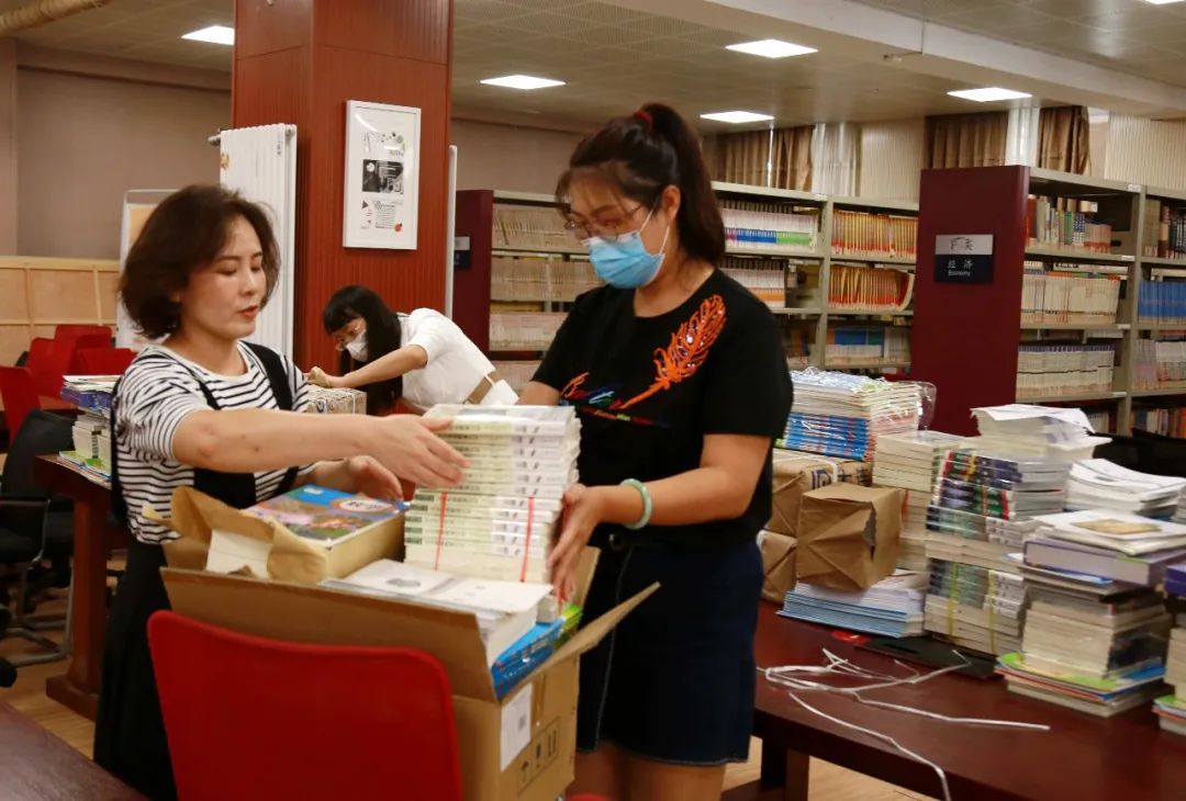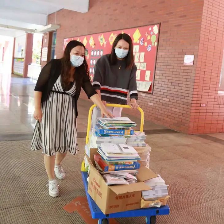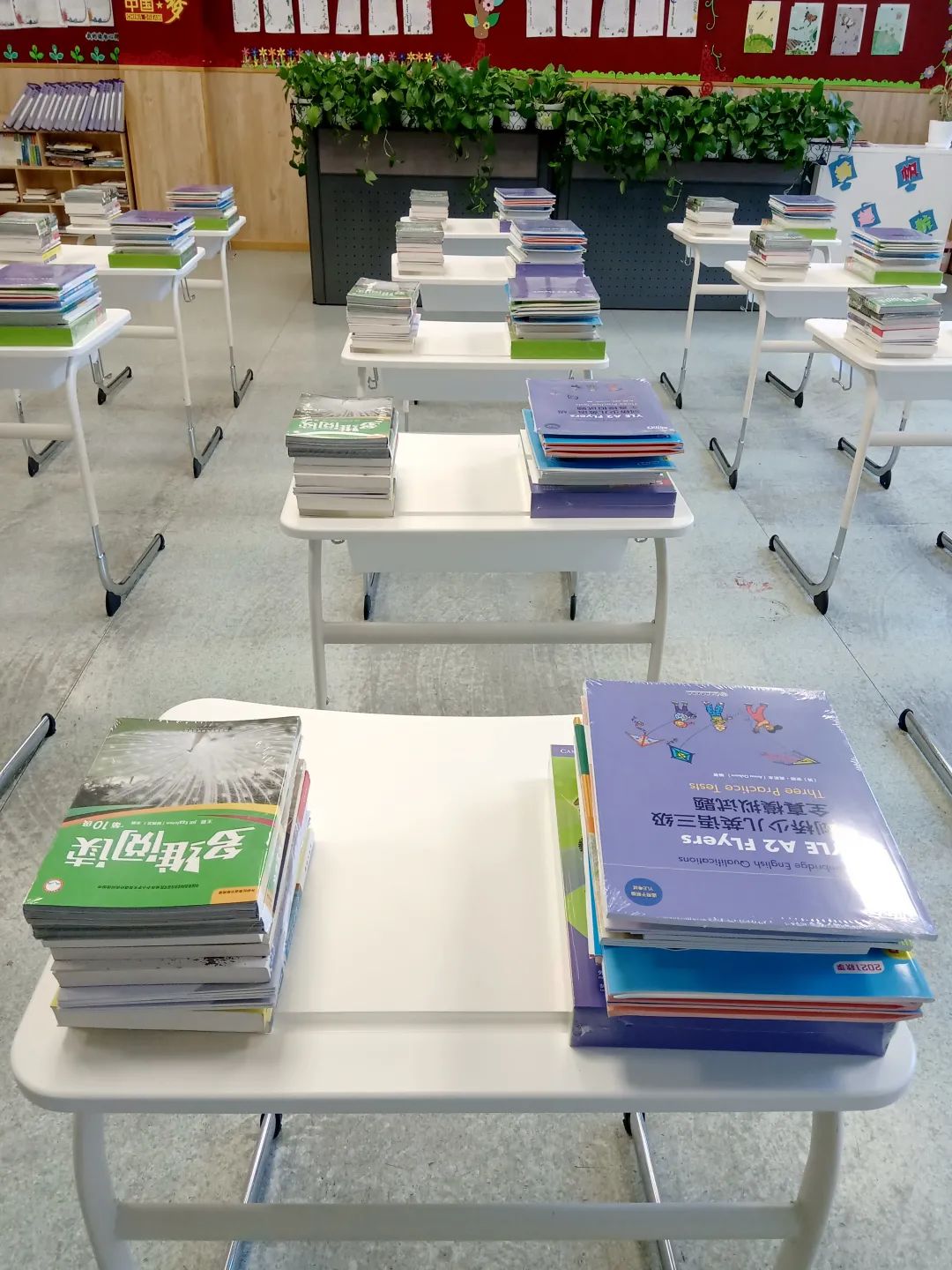 ▲巧手布置班级环创,新学期蕴藏着新希望图书馆老师细心分类整理了新教材,各班负责老师第一时间将教材运送至班级教室。