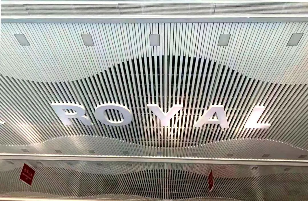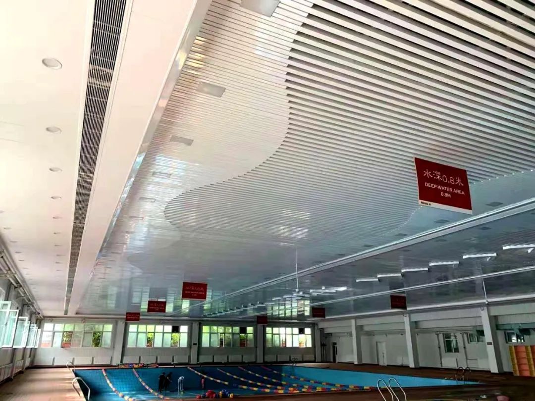 游泳馆利用暑期进行环境升级改造,全新的吊顶防潮、防水、防火、防腐蚀,采用独特的流线造型,王府校区的logo”ROYAL”熠熠生辉。