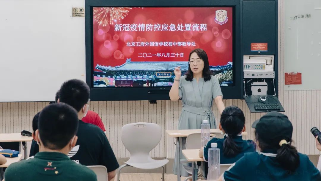 在开学第一课上,北京王府学校校长衡孝军、北京王府外国语初中部常务校长王劲松、北京王府外国语初中部副校长Jonah Carpi分别从学部角度出发,对新学期教学工作进行了总结及展望,并鼓舞学子全力以赴,以昂扬的斗志拥抱新学期。