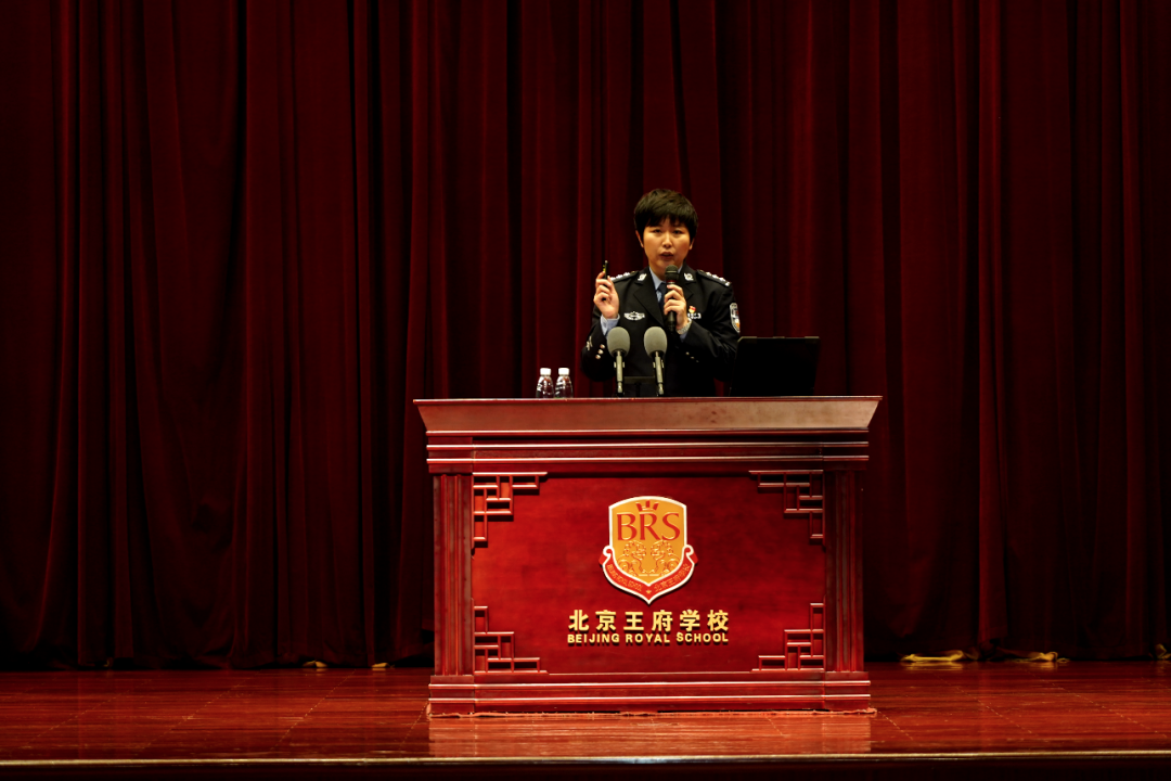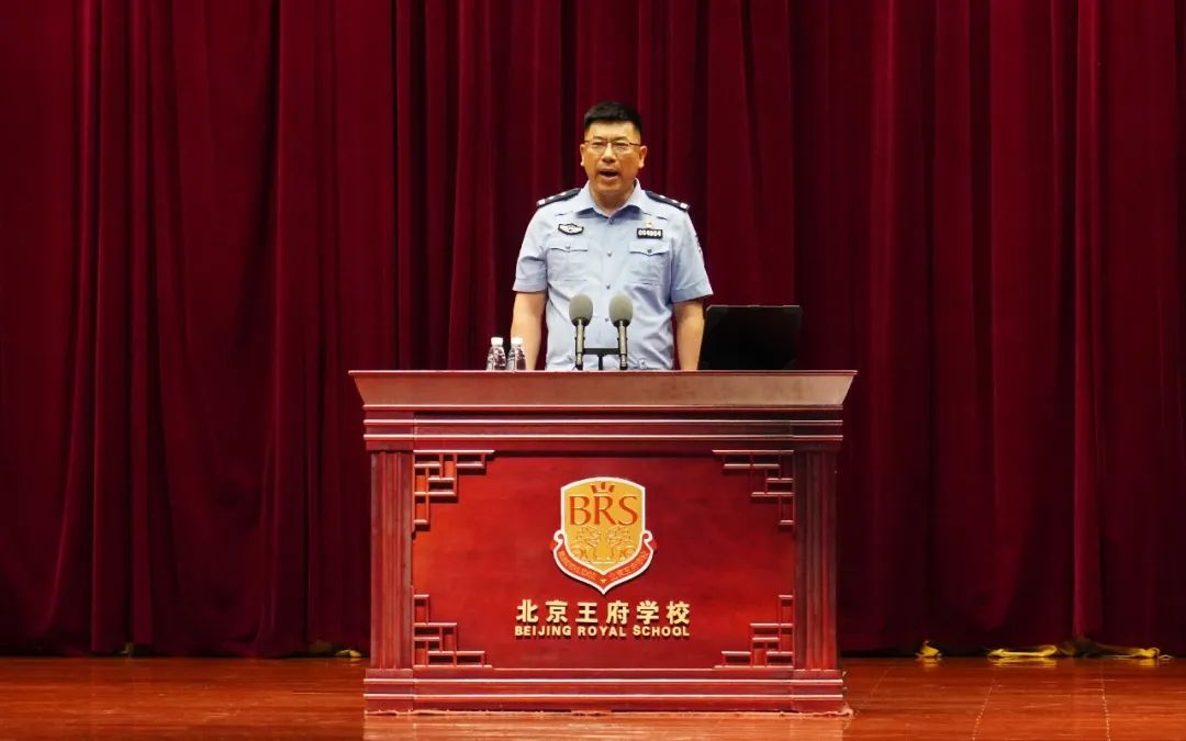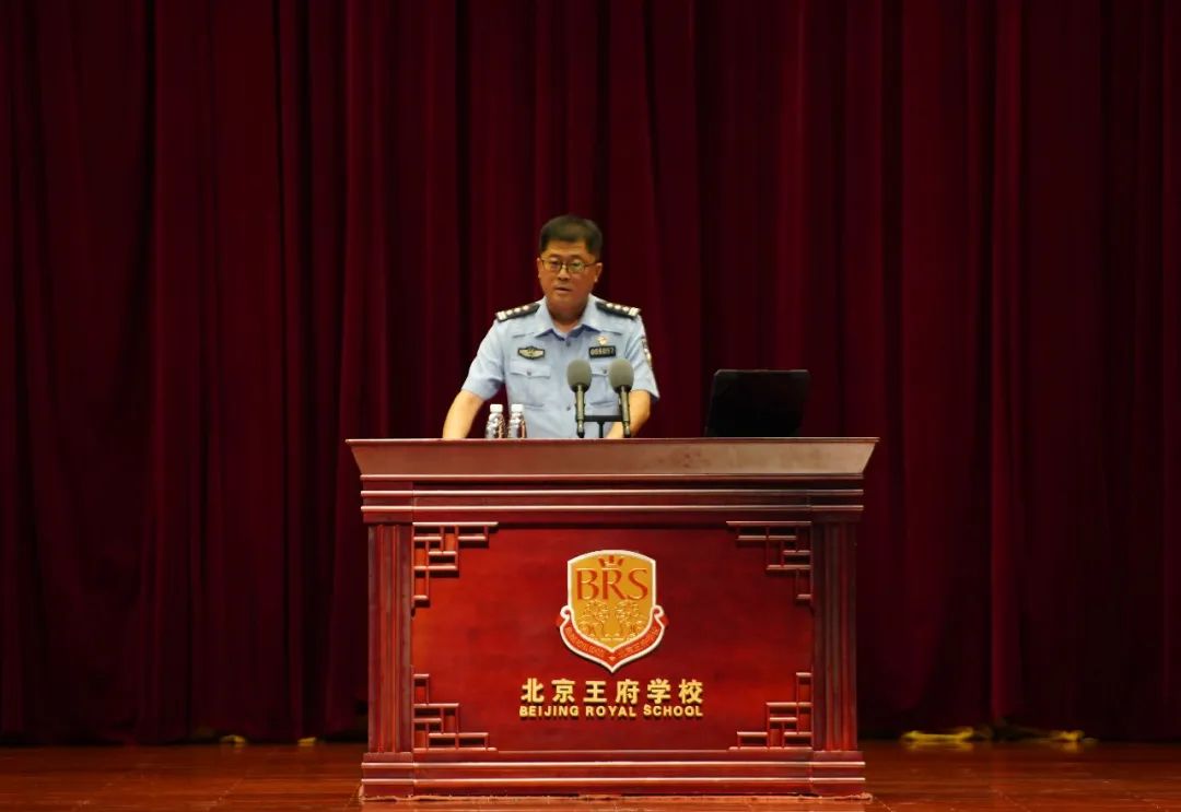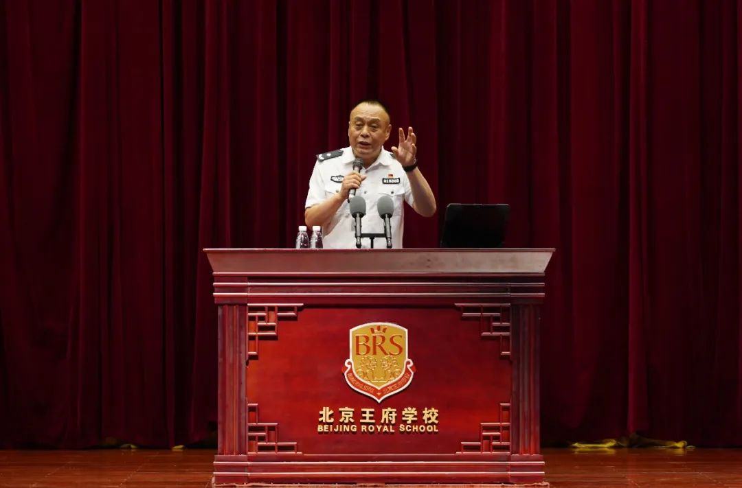 北京王府学校总校长王广发评价此次安全教育讲座是一堂具有重要意义的生命教育课,王广发总校长提出,全体学子应将所有的安全知识入心入脑,用牢靠的安全防范意识和自我保护能力,向日夜辛勤在维护我们生命财产安全岗位上的全体守护神致敬。