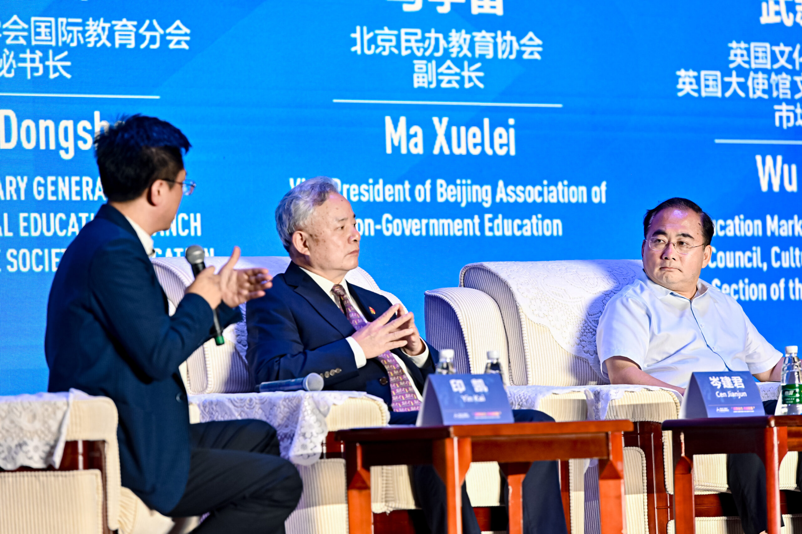 在中国教育国际交流协会出国留学服务分会秘书长印凯主持的专家论坛上,中国驻美国大使馆前公使衔参赞岑建君、中国教育学会留学国际教育分会秘书长张东升、北京民办教育协会副会长马学雷、英国文化教育协会、英国大使馆文化教育处教育市场官员武新平就“双减”新政、新政下国际人才培养模式和国际教育内涵展开了讨论。