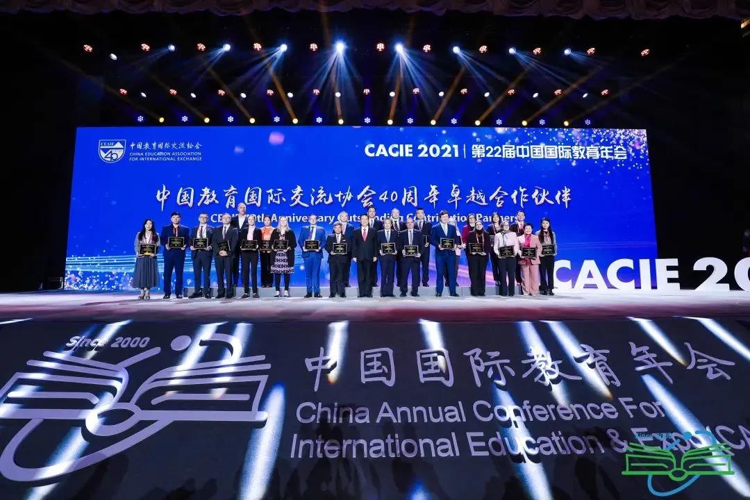▲ “中国教育国际交流协会40周年卓越企业合作伙伴”颁牌仪式
