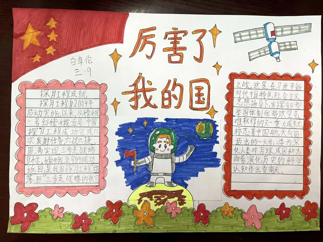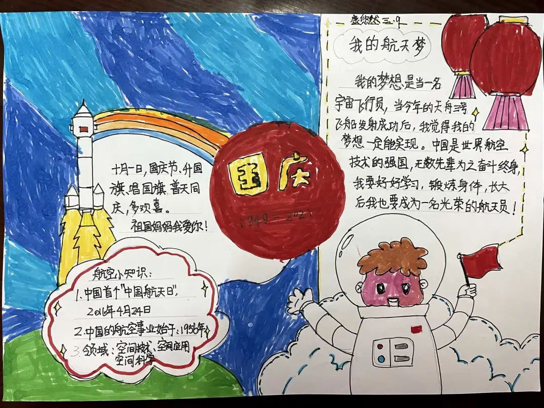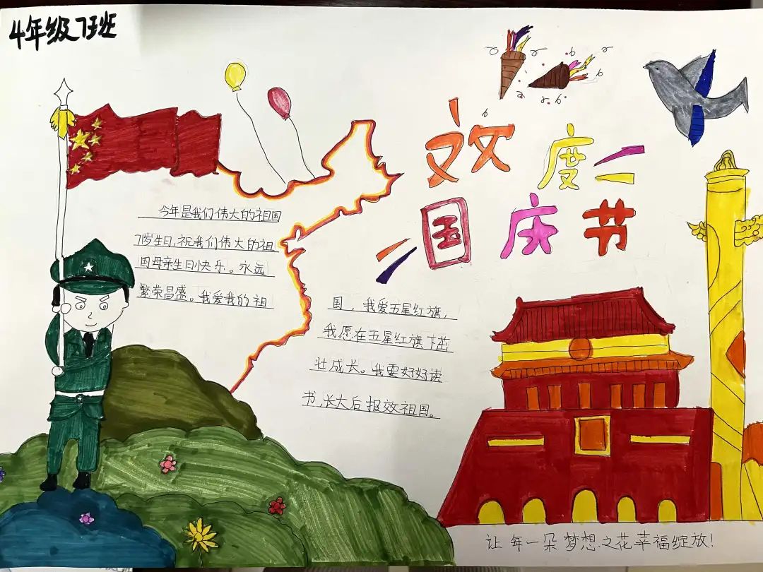 活动倡议同学们利用国庆假期,在休息好、锻炼好的同时,关注国家大事、阅读爱国题材书籍、观看爱国题材电影,低年级同学收集素材,完成一张爱国题材手抄报,高年级同学尝试写一篇关于“梦想”的爱国题材作文。