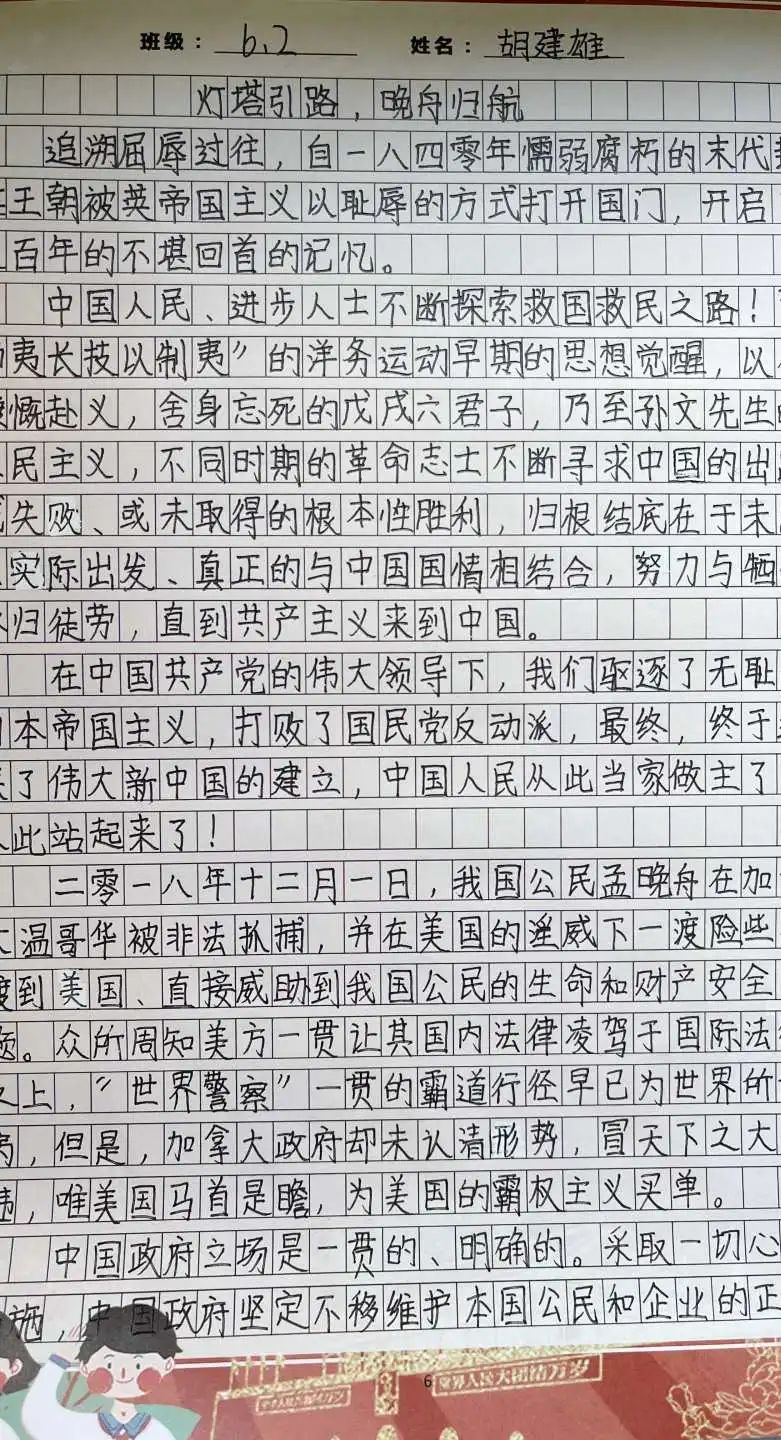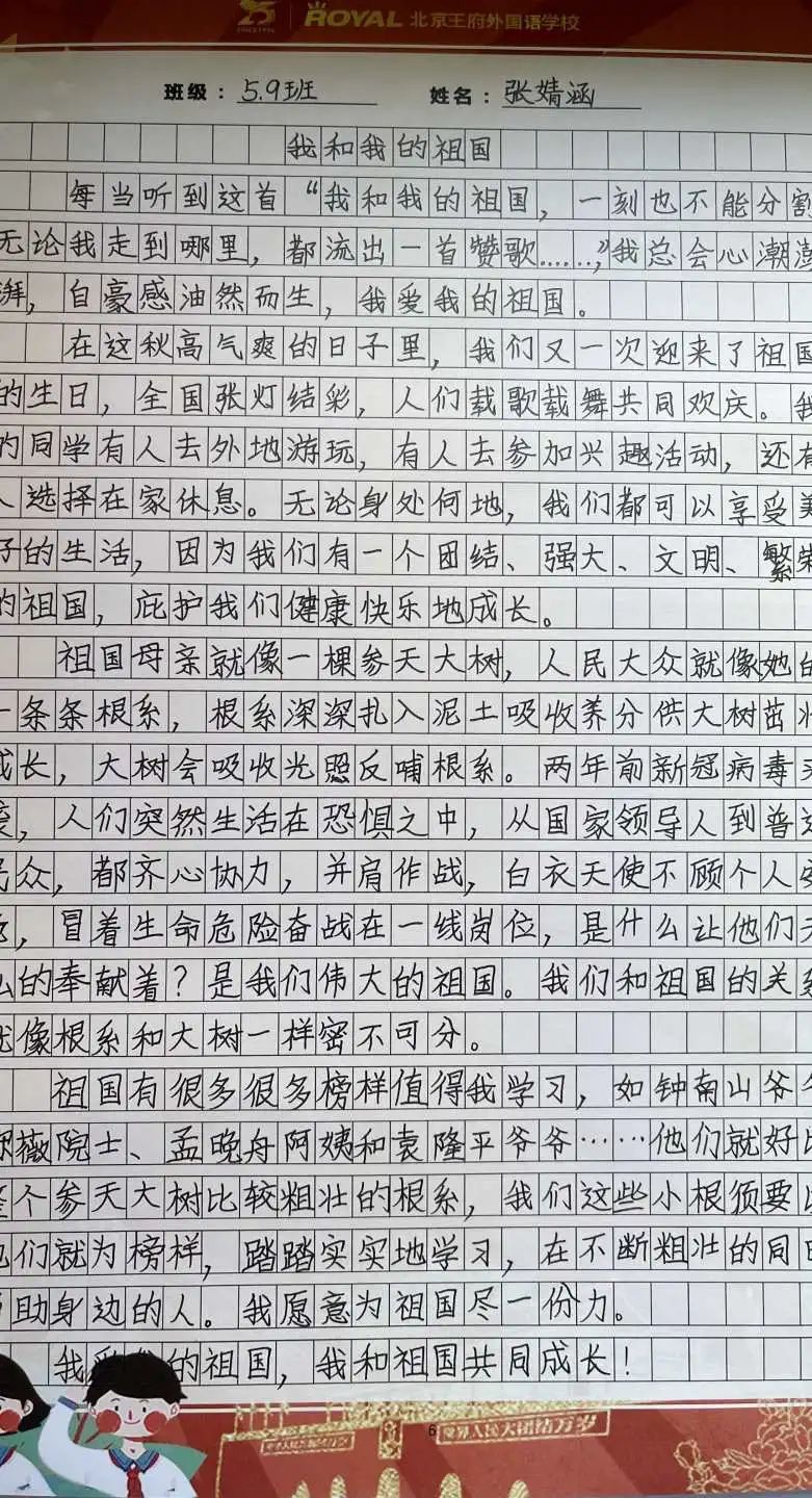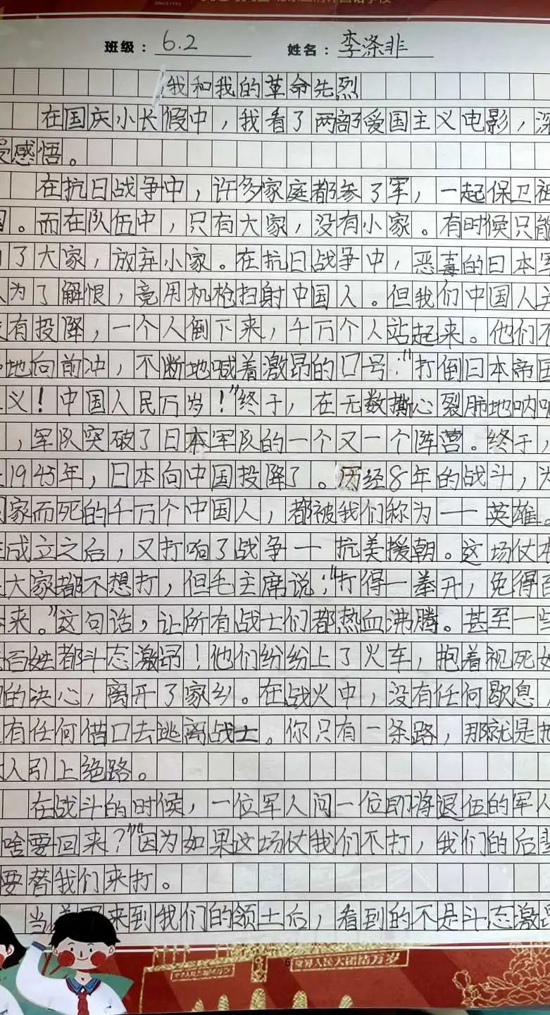 这些答卷上流露出的赤子之心与浓浓的爱国情,让老师们不禁为之感动与骄傲,也仿佛看到了这些稚嫩的“小绿芽”终有一天,将成长为共和国的中流砥柱。
