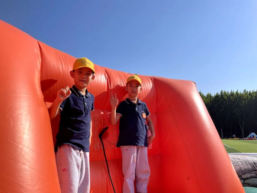 ▲秋季趣味运动会上,胡圣显和小伙伴们携手闯关