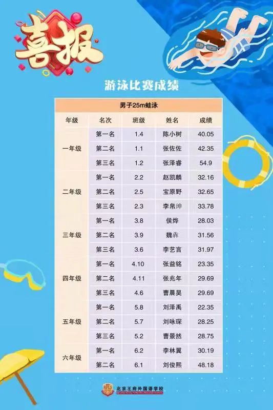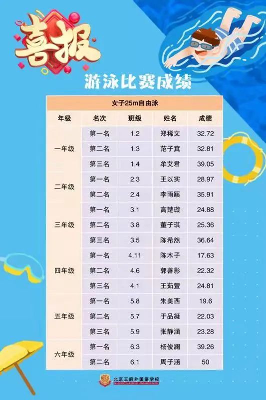 不久前,北京王府学校体育月赛游泳项目之小学组比赛,在校区游泳馆成功举办,近130名小学部学生参与了本次比赛。