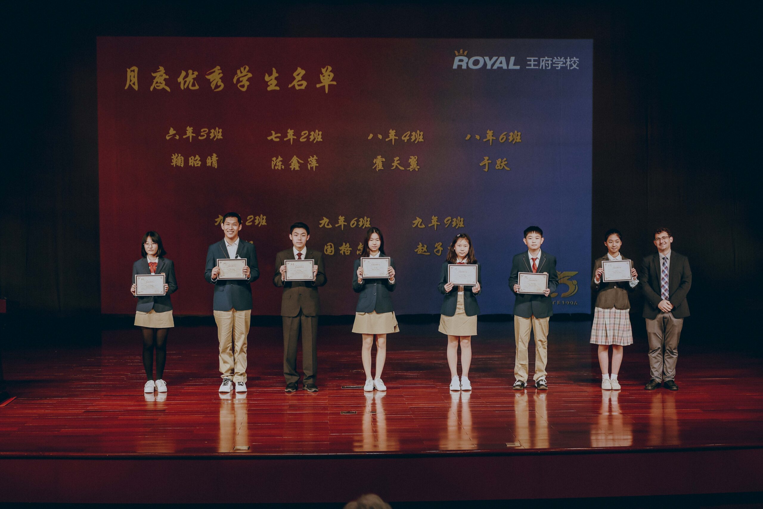 随后,初中部教导处主任高超老师向全体师生分享了九月份优秀学生事迹,副校长Jonah Carpi为7名优秀学生颁奖。
