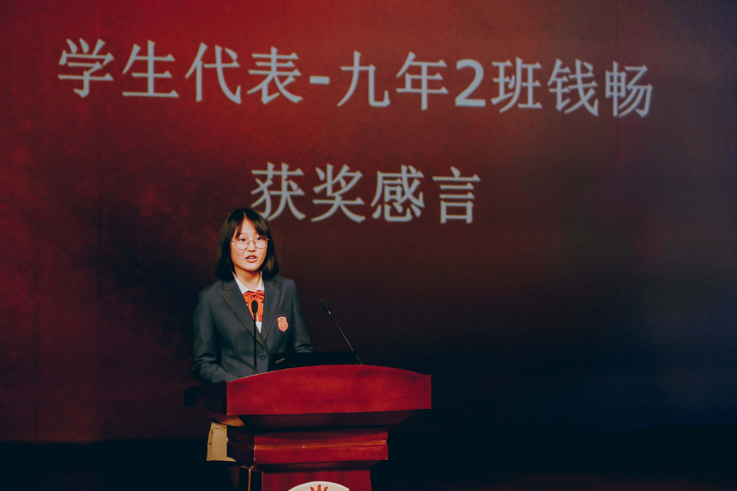 优秀学生钱畅上台发表获奖感言并分享学习心得。钱畅同学还呼吁同学们认真学习,专注学业的同时,还应当注重培养提升自身综合素养,在生活中养成良好的礼仪习惯,成为文明守礼的中学生,共同创建良好的社会风尚。