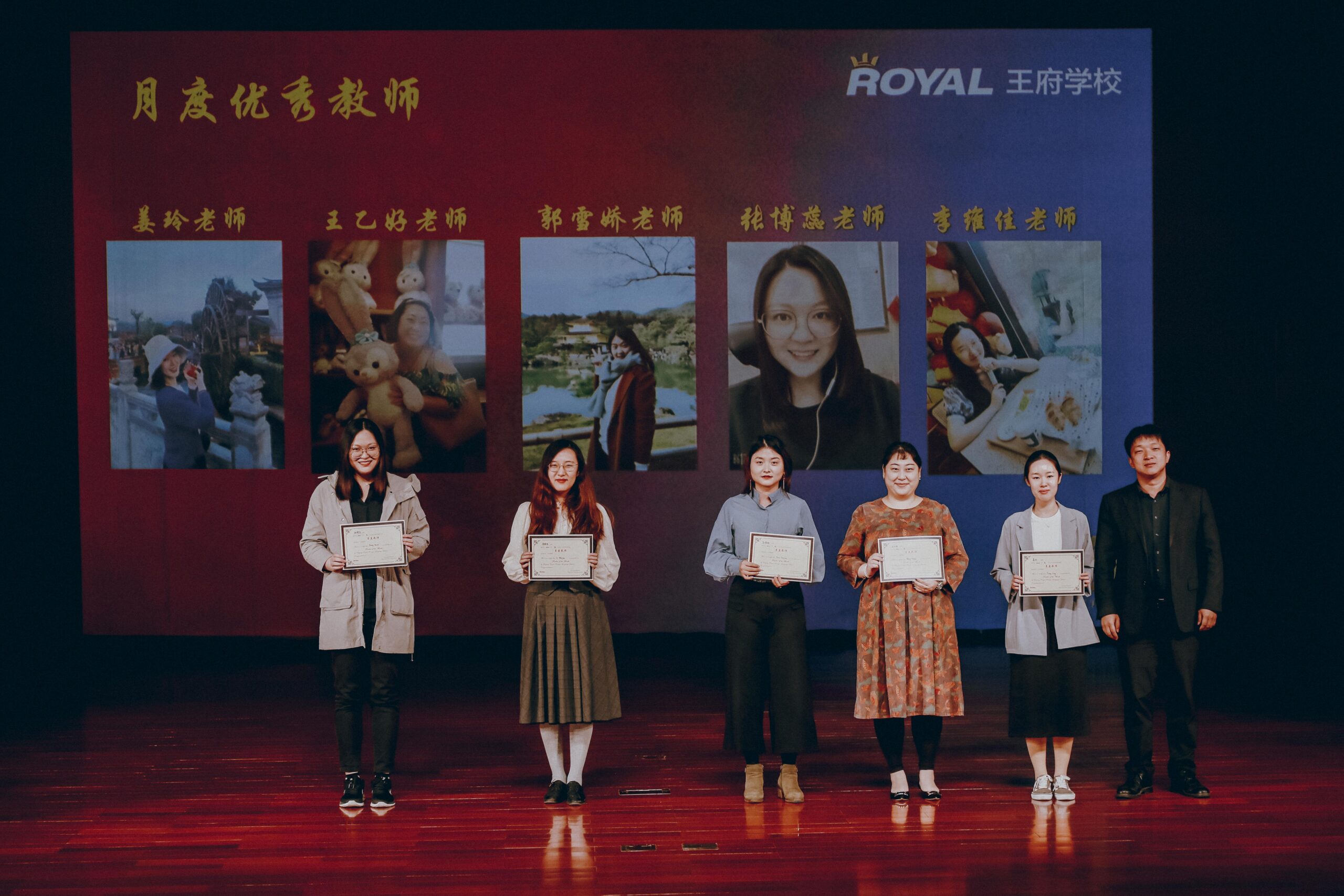 ▲北京王府外国语学校常务副校长王劲松为月度优秀教师颁奖