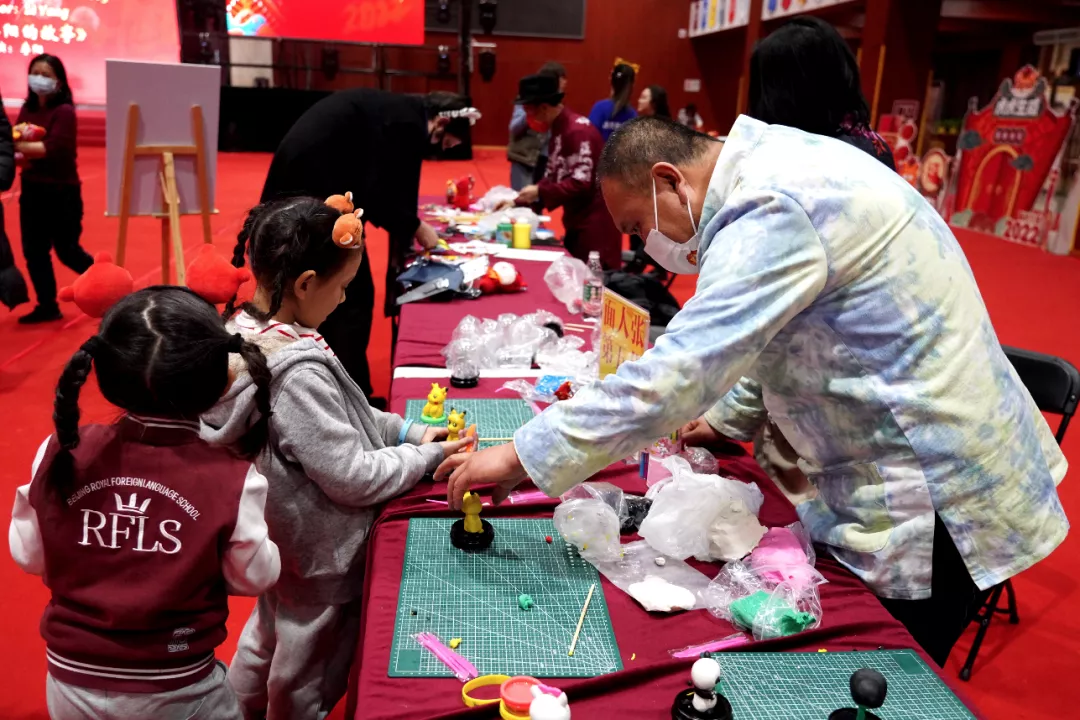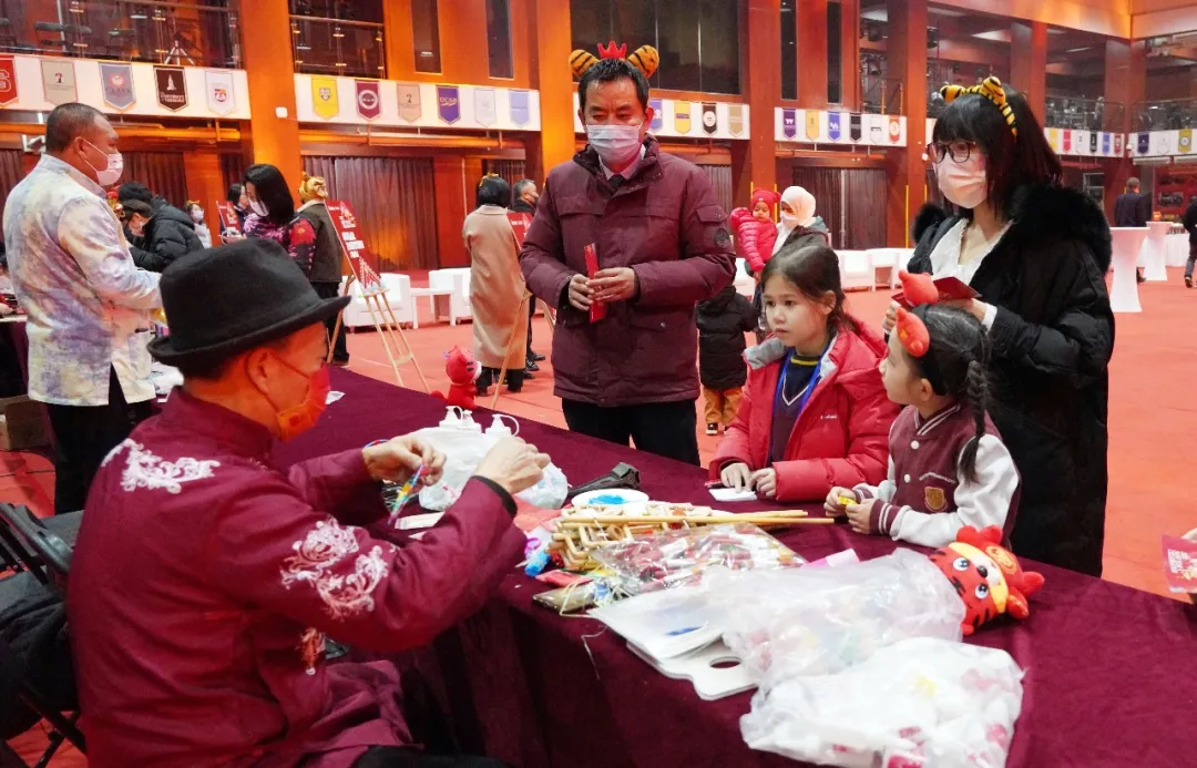 现场精心准备的多个中国传统文化体验点全场开放,外籍教师和他们的家人、孩子们,沉浸在做风车、写“福”字、画糖画、捏面人和剪纸的欢乐中,大家共同品味中华文化魅力,现场一派节日的欢乐景象。