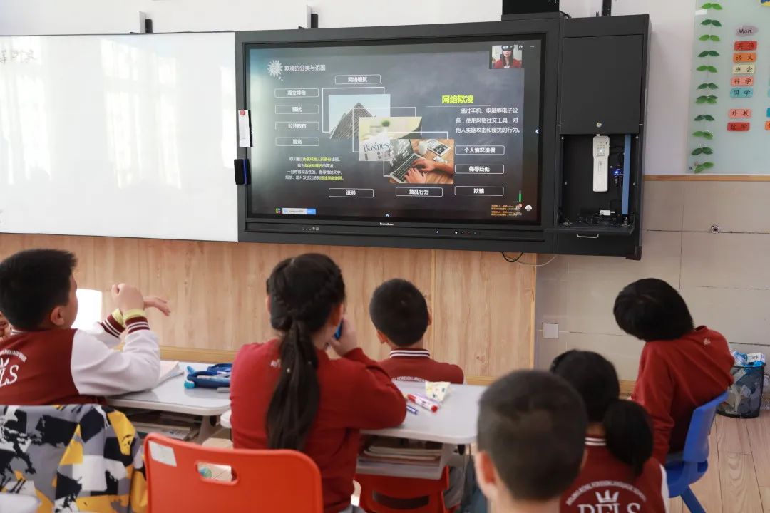 为深入贯彻落实《中华人民共和国未成年人保护法》《中华人民共和国预防未成年人犯罪法》等法律法规,切实加强学生思想品德教育、法治教育和心理健康教育,促进学生健康快乐成长,12月13日,北京王府外国语小学以“云直播”的方式,开展预防校园欺凌专题讲座,综合素质班四至六年级学生在各班教室观看直播并互相交流、讨论各自的学习感受。