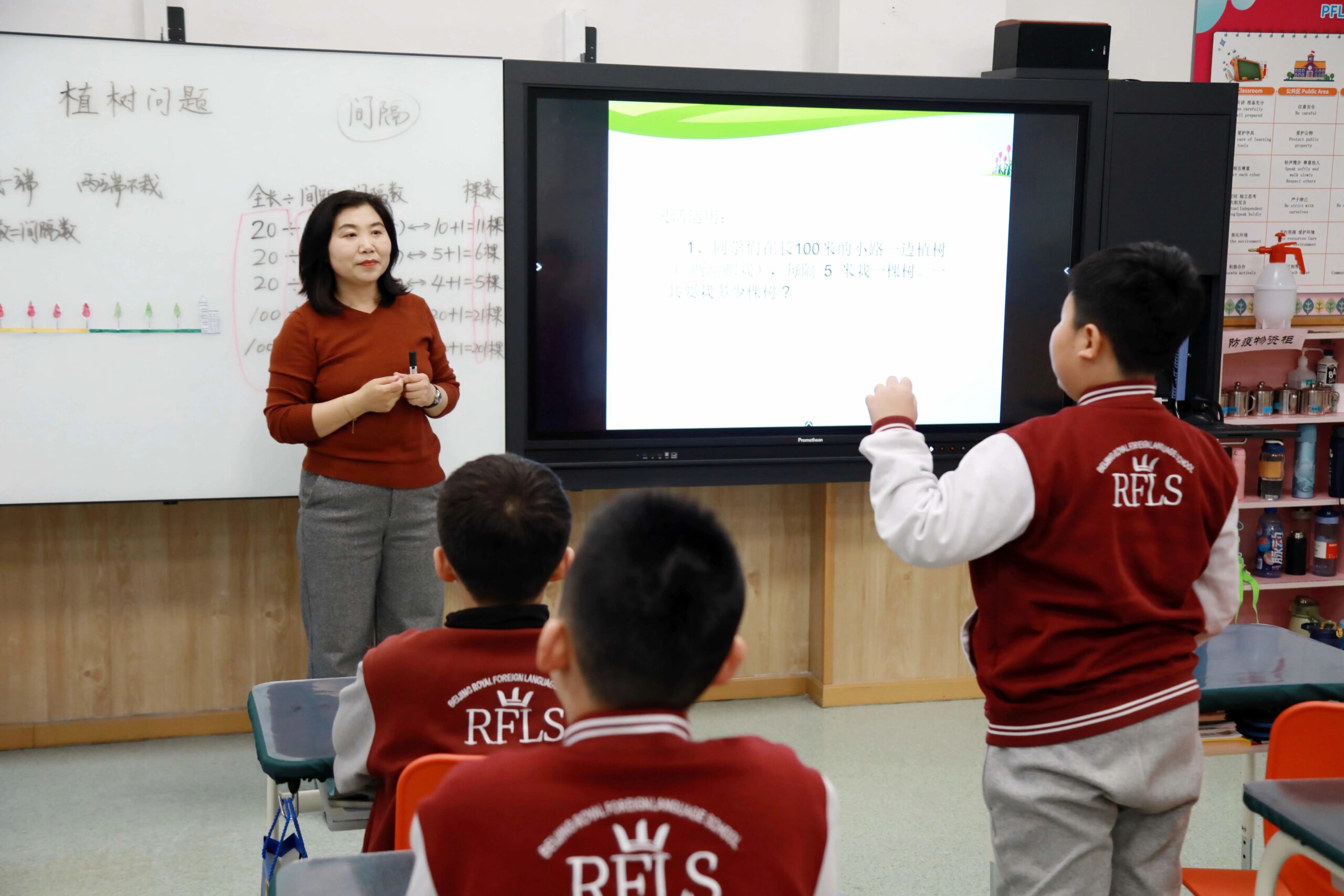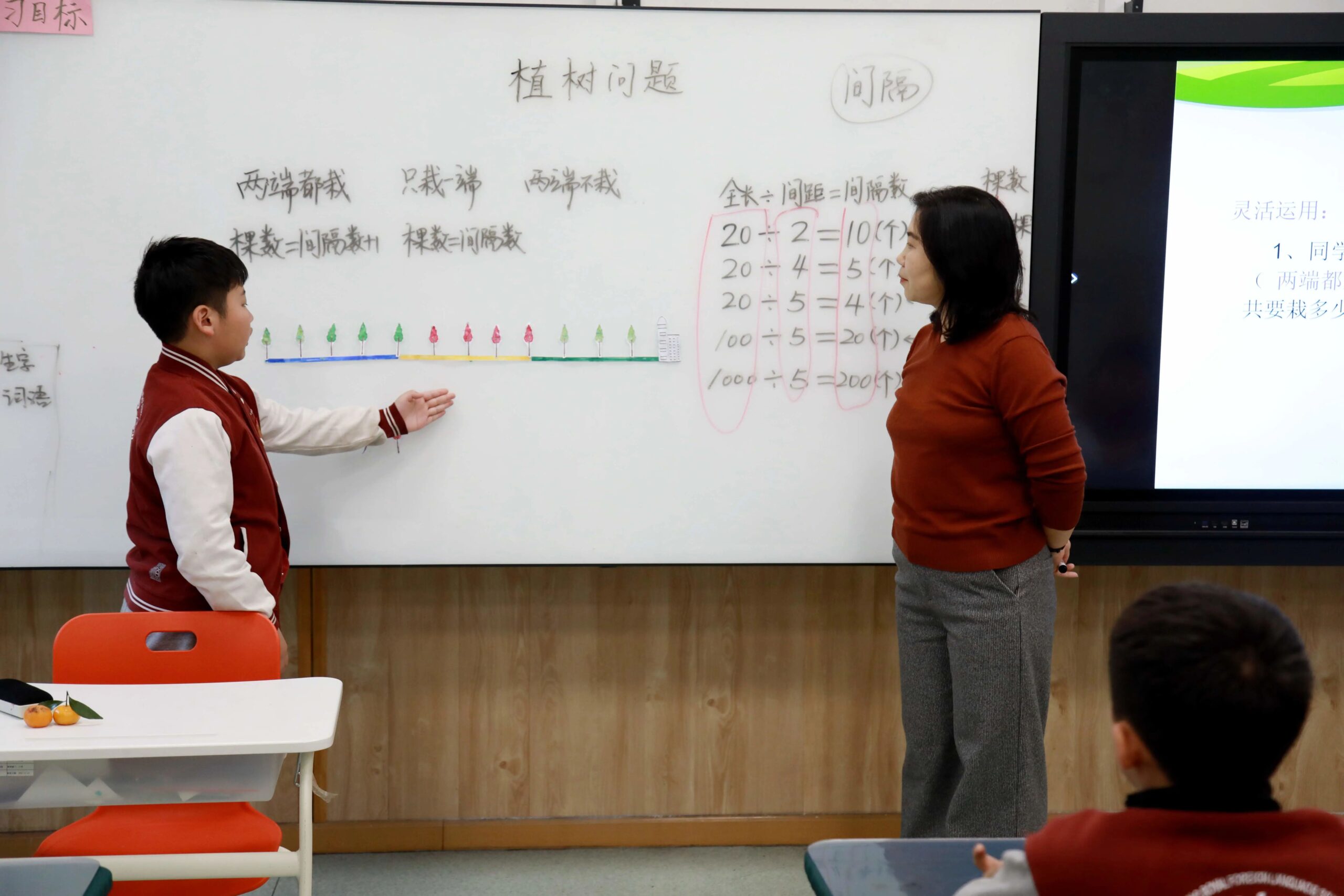 近日,王府外国语小学部数学组教师房继英就人教版《小学数学》(第九册)中的“植树问题”一课,带领五(6)班同学开启了一场酣畅淋漓的数学深度学习之旅。
