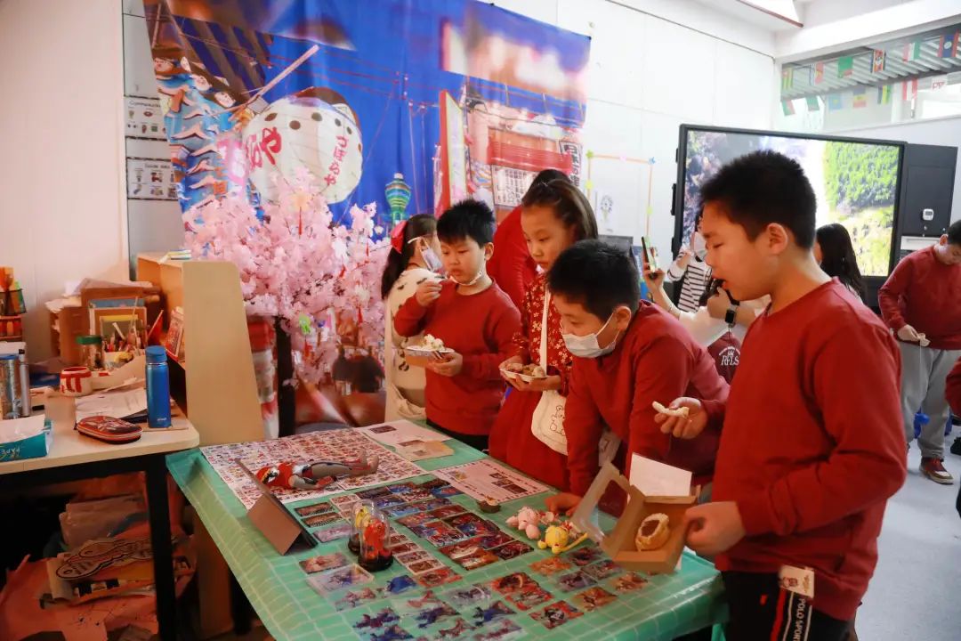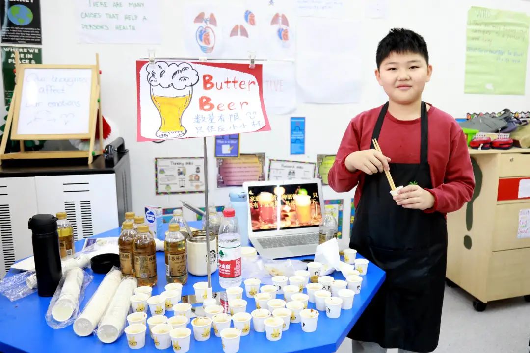 After choosing a country, the next step is to research on their cultural specialties and decorate the classrooms. Each class is divided into groups, some are in charge of food, they not lonely need to look for them, but also need to know how to make them! Jimmy from 5.1 researched a typical British drink butter beer and leant how to make it. He used butter, cream, and brown sugar to make taffy syrup, then add some soda, put some whipping cream on top, and finally sprinkled some ginger powder on top. It was such a delicate drink and the “tourists“ enjoyed it very much! Teachers from each class were also very creative, teacher from 1.2 researched about a special carrot drink from Jamaica and make it in the classroom. A teacher from 5.1 dress up in traditional South Korean clothes and made Fried Rice Cake in the classroom. Class 2.2 set up a cherry tree in the classroom which helps all the tourists to feel that they were in Japan enjoying the beautiful scenery. Class 1.1 shown all the great artists from the Netherland and built an art museum in the classroom showcasing all the great art pieces!