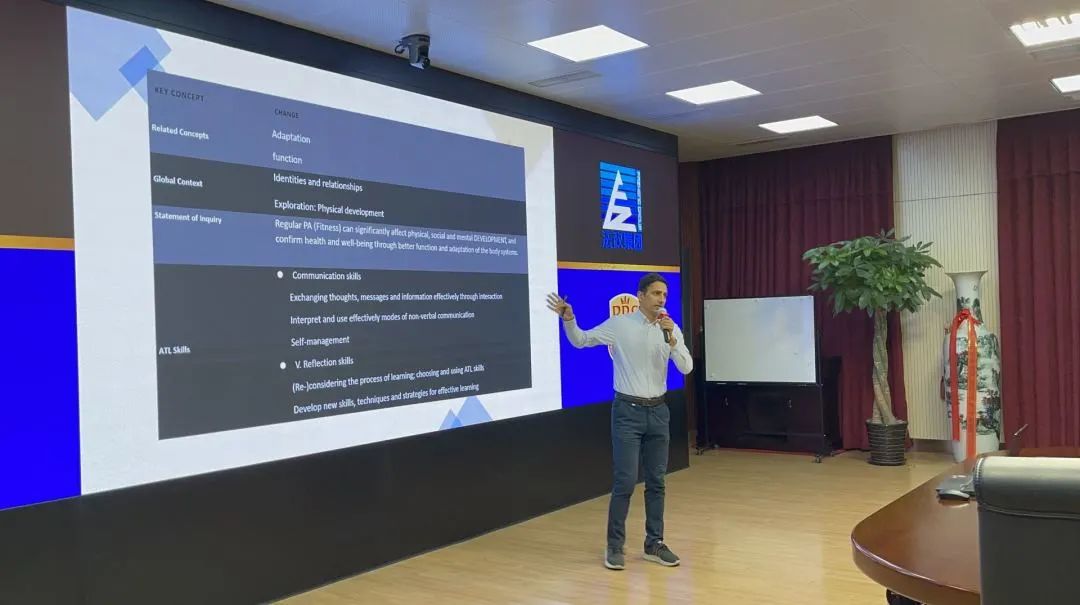 初中部常务副校长王劲松先生在展示开始前发表了“以学术治校,以评估策略的革新精进教学策略”为主题的开场致辞。