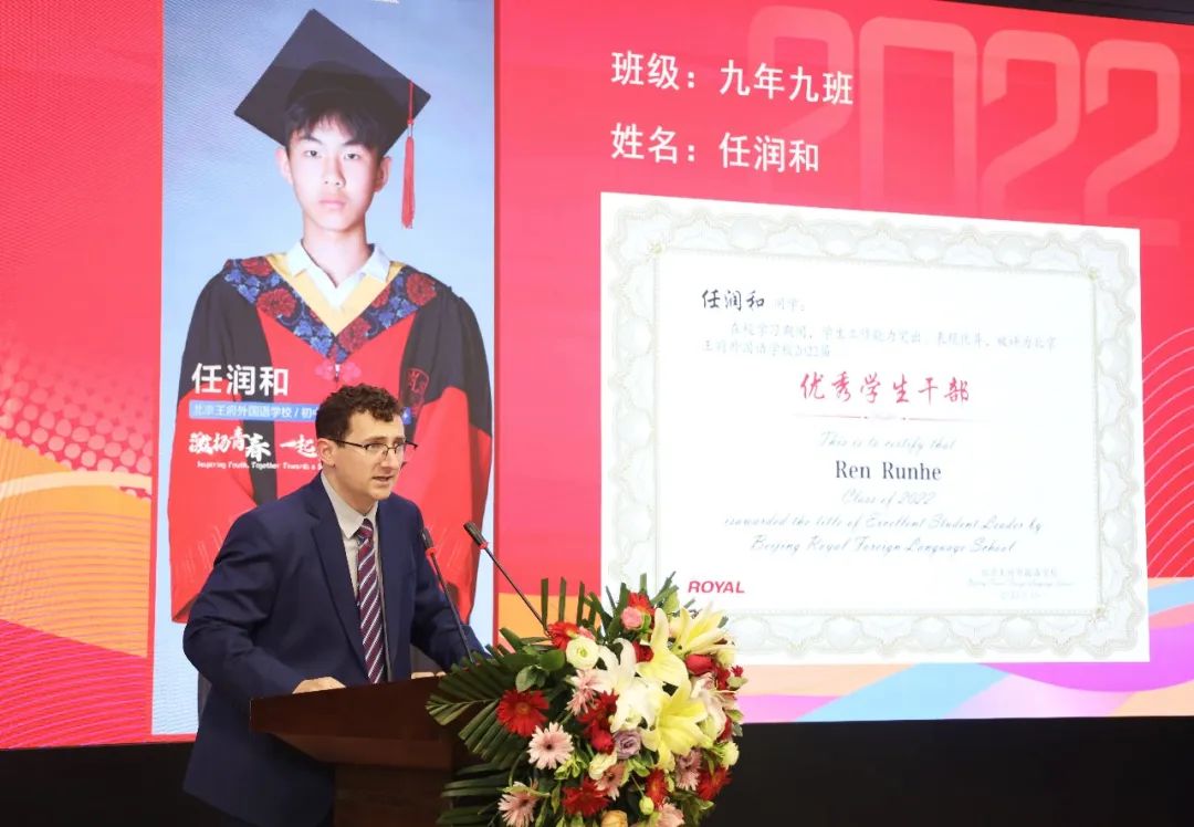 ▲初中部副校长Jonah Carpi宣读优秀学生干部名单