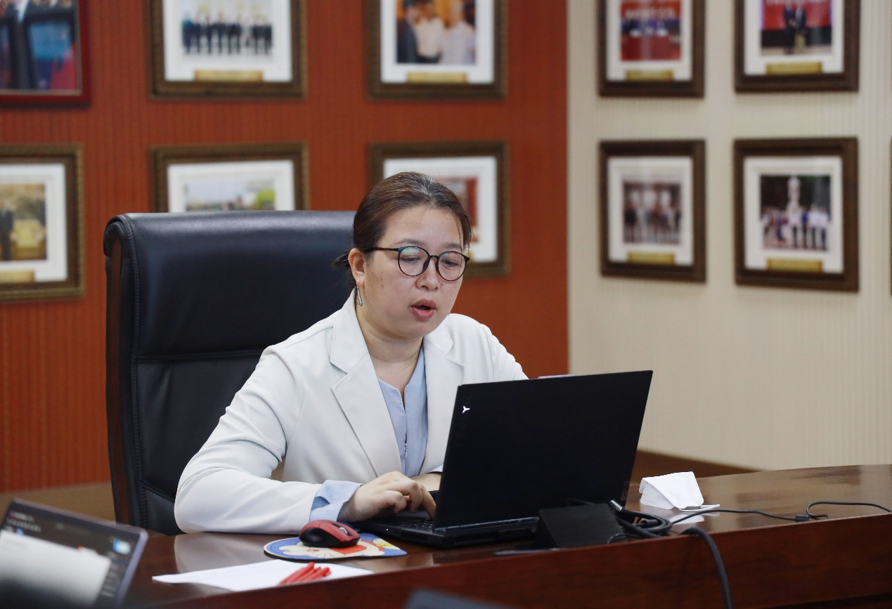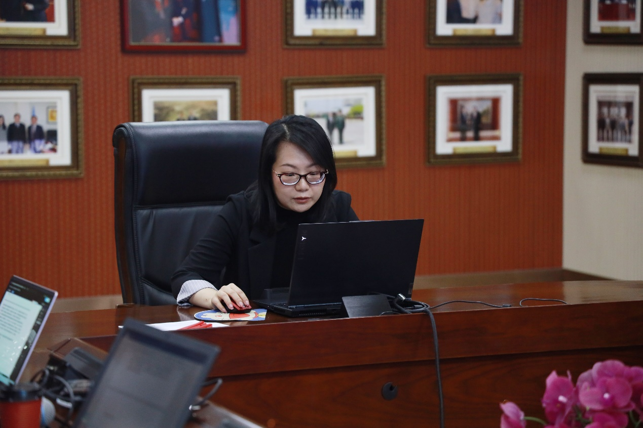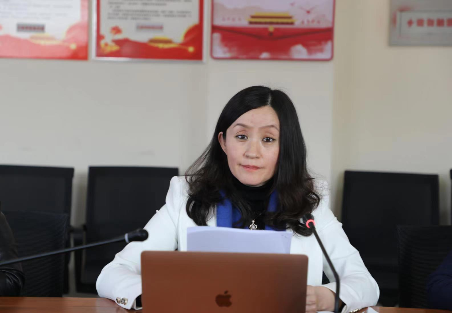 ▲运城市盐湖区王府学校伏晶晶校长汇报“国际理解教育:基于‘人类命运共同体’理念的校本课程”课题