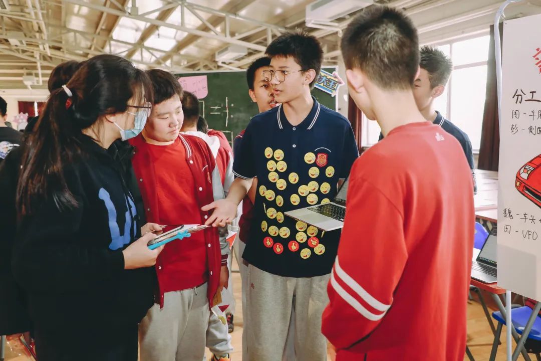 嘉年华现场,参赛的同学们需要为到场的师生介绍和推荐自己的作品,以期获得象征着投票的笑脸徽章。为了得到投票,同学们使出了浑身解数。有的小组着力推荐着作品的深刻意蕴;有的小组强调作品的互动性强;有的小组将自己设计之路中的艰难娓娓道来……每个小组都挂满了象征着票数和荣誉的徽章,收获了满满的认可。