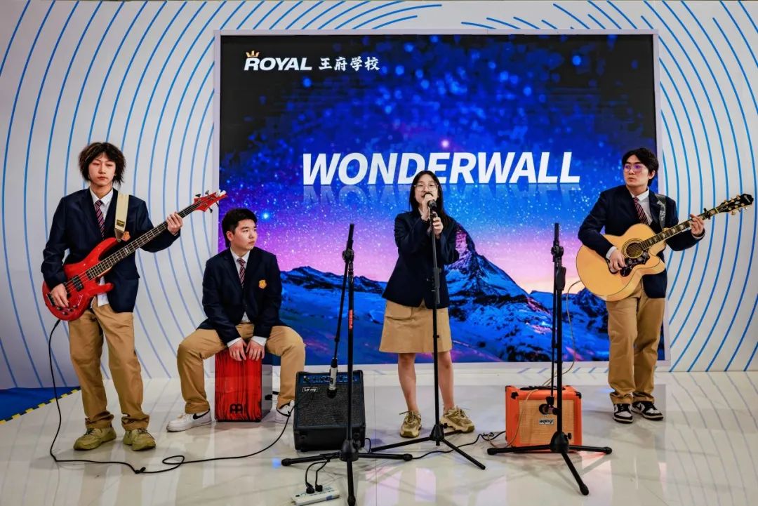 随着主唱钱盈盈同学略带沙哑的歌声响起,王府学校“热音社”社长侯轶凡用他的木吉他创造出独特的英式摇滚旋律,这一瞬间充盈了整个空间,为推介区的展演活动注入了新活力。