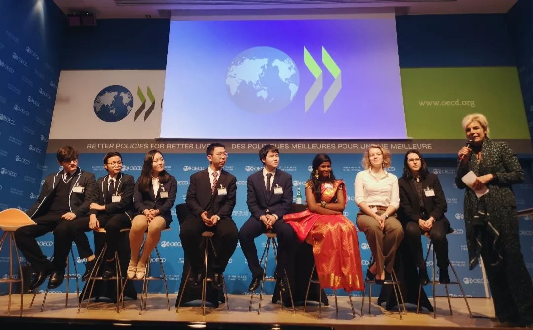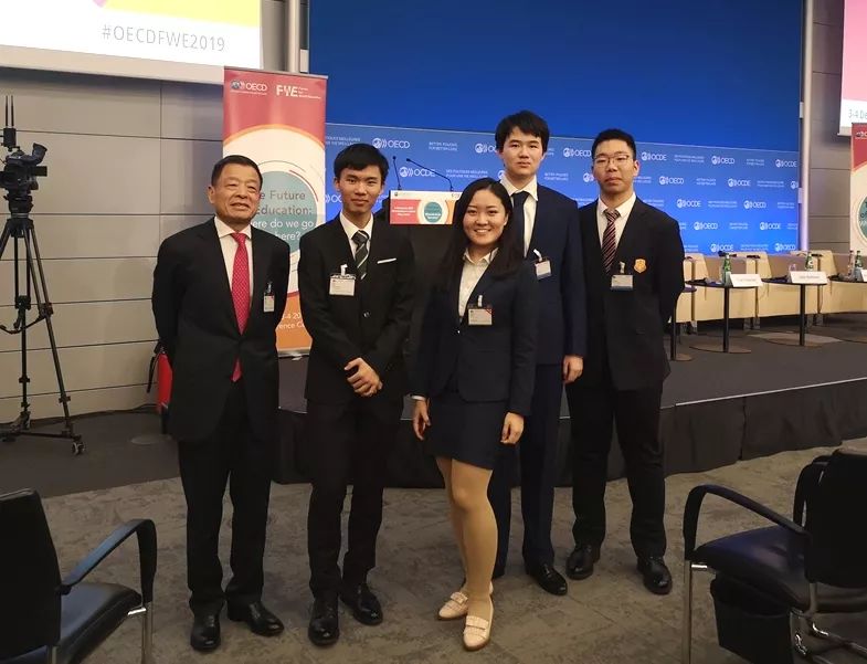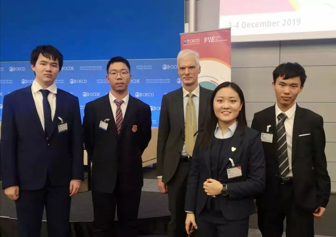 2019年12月3-4日、法国巴黎、经合组织(OECD)会议中心,北京王府学校高三年级的宋之誉、周逸霖,高二年级的李罗毅夫、何逸四位同学,在王广发校长的率领下走进第一届世界教育论坛的会议现场,与来自世界各地政界、商界、教育界专家以及优秀青年代表一起共议未来教育的改革方向。