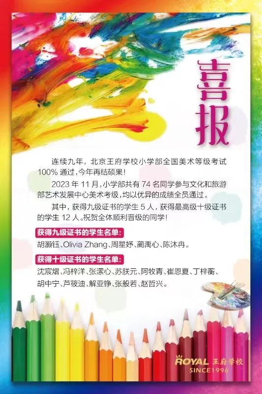 向美而行,以美育人。让我们为每一个在艺术学习道路上坚持的孩子点赞,同时,也要感谢在王府学子背后默默付出的艺术园丁们!