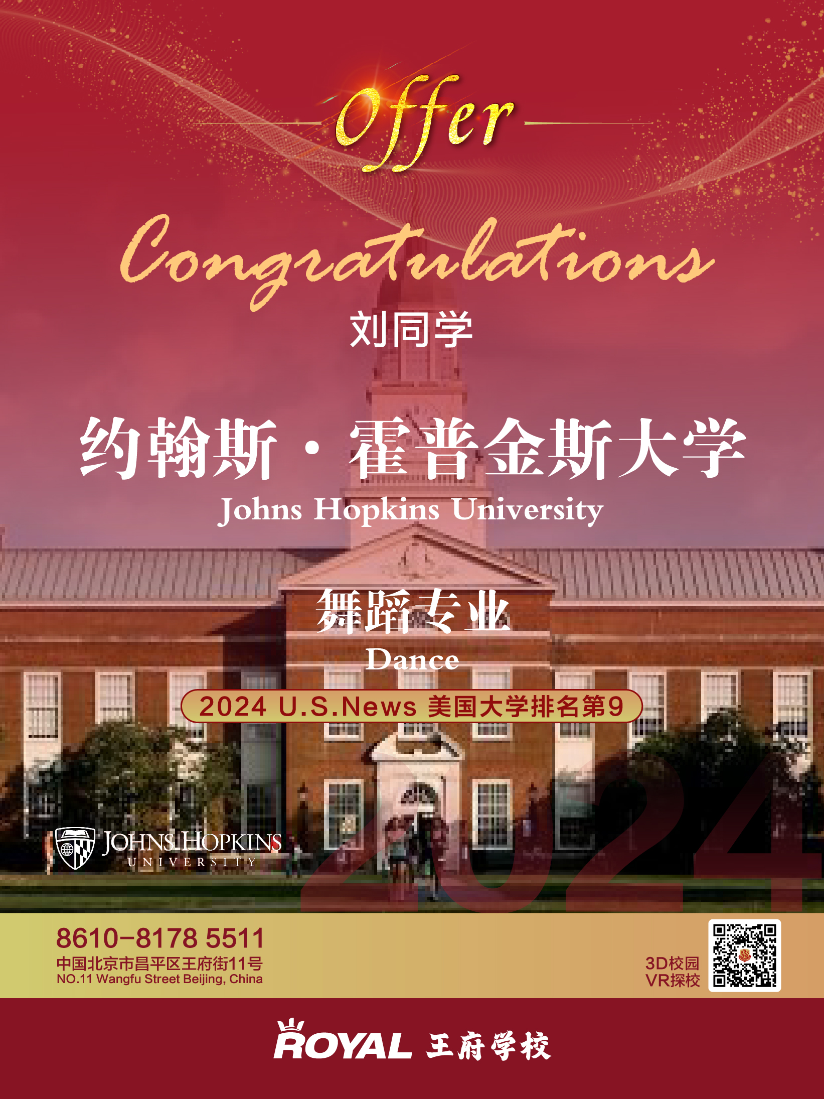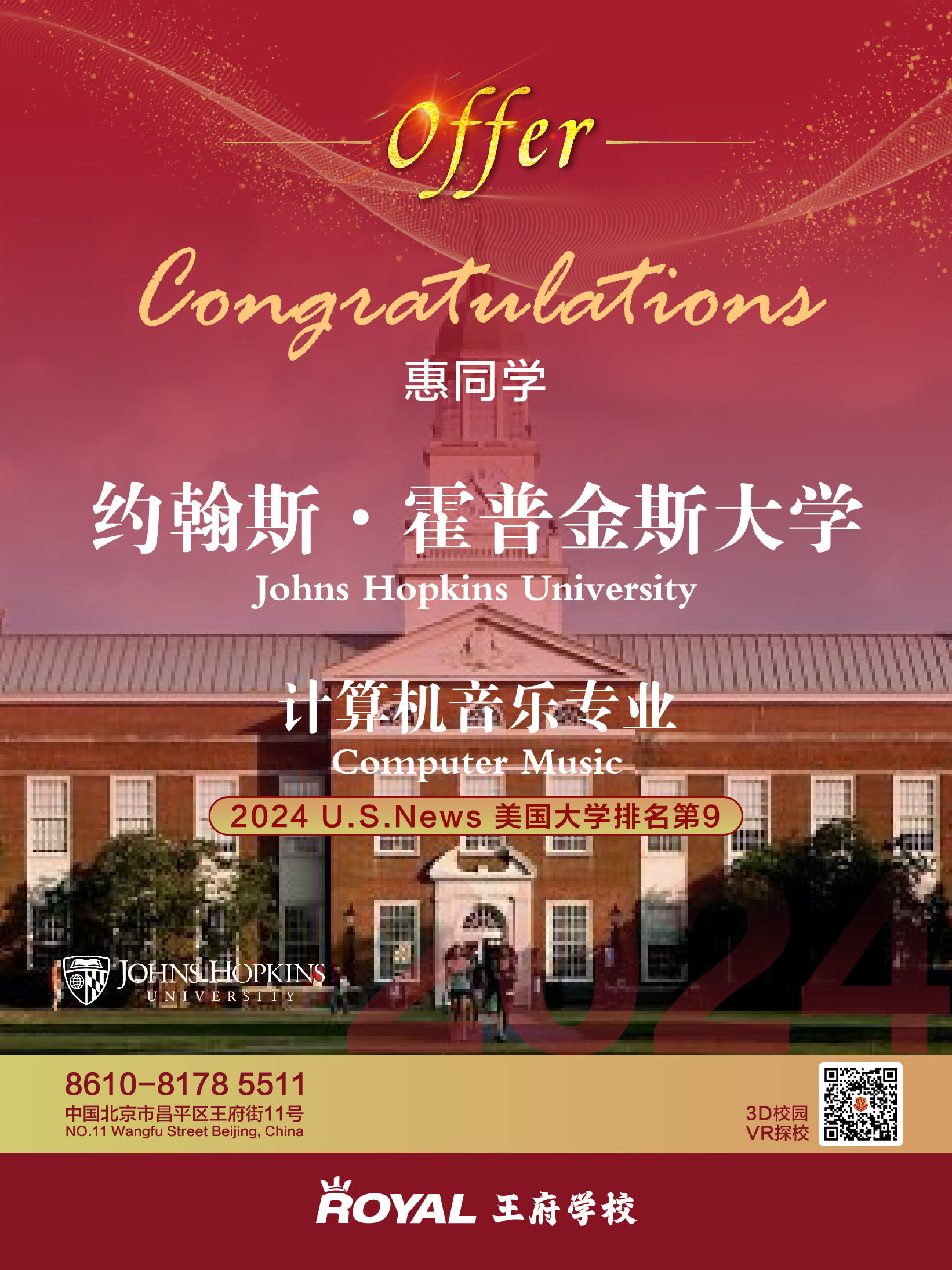 收到排名全美第9位的约翰斯·霍普金斯大学录取2枚,其录取难度比肩藤校,我校成绩再次刷新!