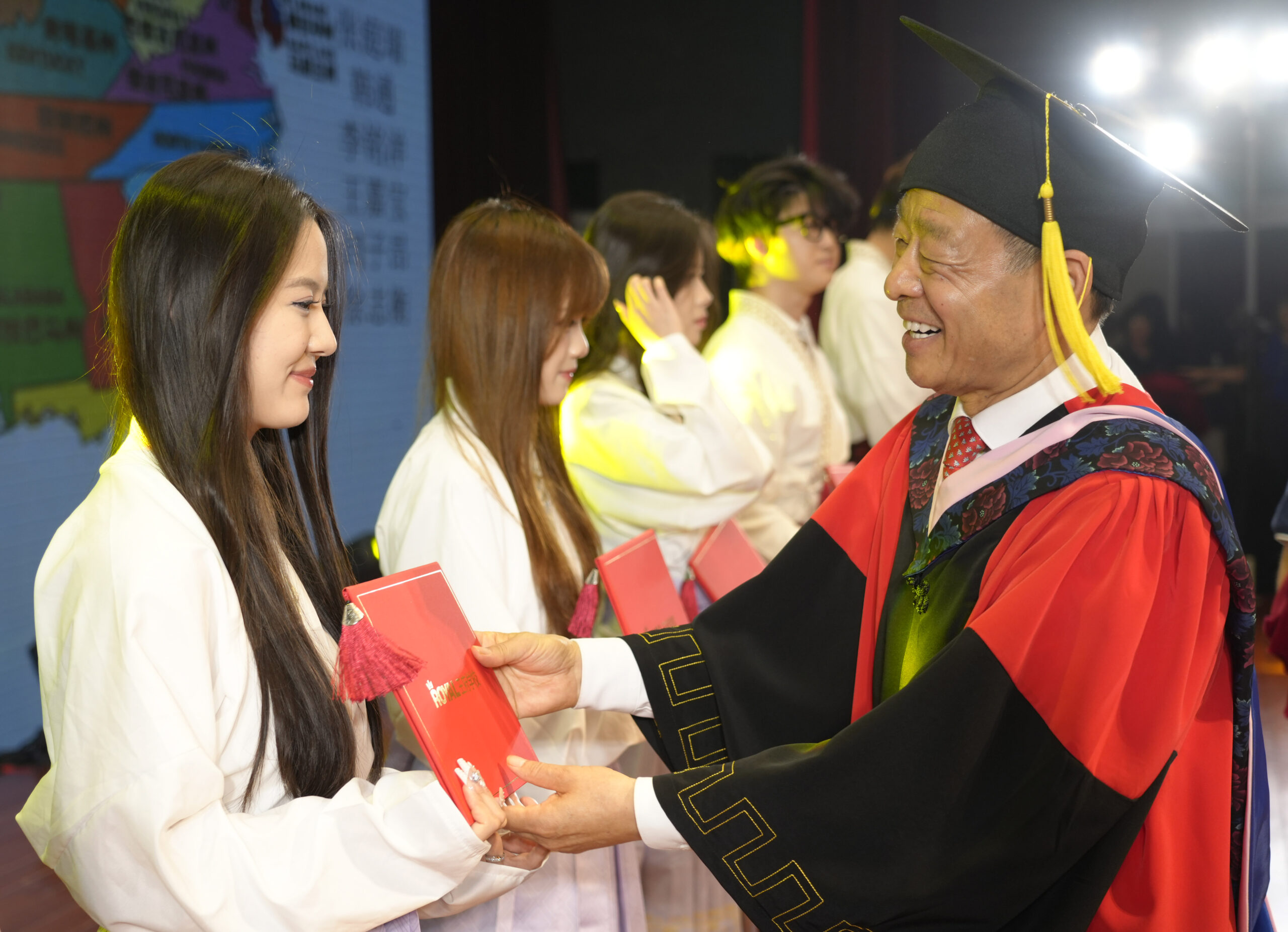你们即将成为走上国际舞台的世界公民,未来你们会体验到多元文化,会成为链接世界的桥梁,希望你们肩负起传播中国文化使命的责任,以发展的眼光‘平其心,论天下之事;定其心,应天下之变’。