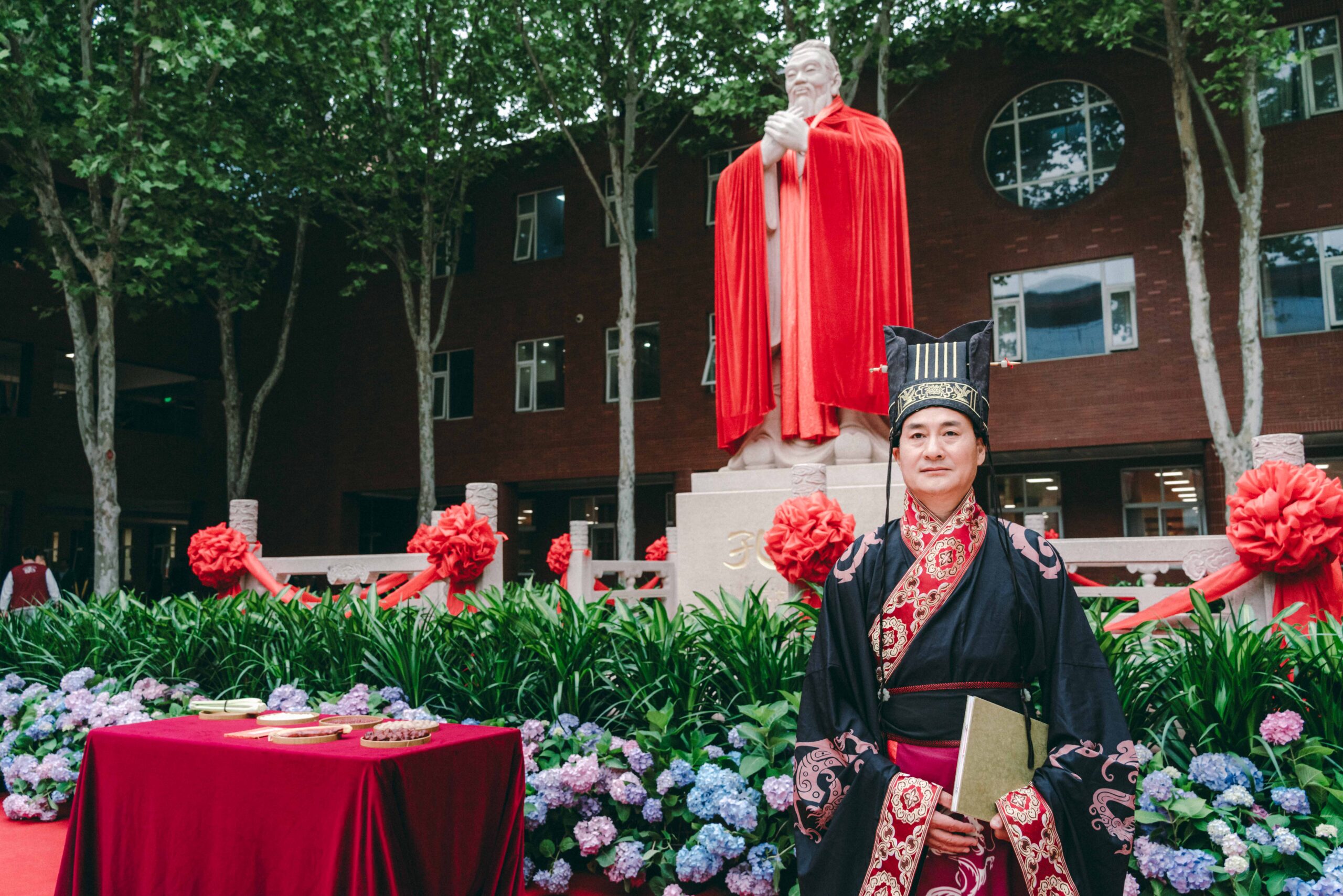 承延圣哲精神,传承仁爱之道,全体毕业生在儒家礼仪非遗传承人孟令忠先生和师长们的带领下,追思圣贤,虔诚朝圣。