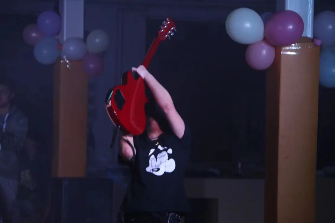 ●侯轶凡 : 其实从技术来讲,我的吉他不是很强,但我一直觉得技术是辅助情感的。我们平时在演出的时候,更希望台下的观众能够感受到这首歌曲或者表演者的激情。像枪花乐队的吉他手Slash,虽然有时候他弹奏的音色不是那么好听,但大家都能从他的live里感受到他丰沛的情感。