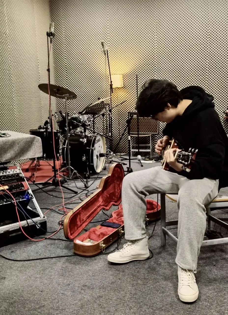 刚上10年级的侯轶凡在一次校园活动上遇到了12年级的孙明宇(2022届毕业生,已被伯克利音乐学院、苏格兰皇家音乐学院等名校录取),看着在台上闪闪发光的学长,那时候正迷茫的侯轶凡也下定决心:我想学音乐,组建一个自己的乐队。于是他捡起了在小学时那把拨动过的吉他。