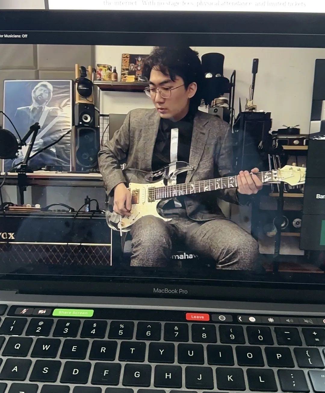 ●侯轶凡 : 这一定是个冒险的决定,但我下定决心学音乐了也没有想过planB。准备材料的时候,我甚至觉得百分之百申请不上,但还是想努力一把!申请里我认为比较出彩的可能是我的面试和试音部分。伯克利非常看中学生的即兴能力,而音感和音乐性也是我比较擅长的一点。我们乐队在表演原创作品的时候,我的solo部分基本都是即兴的,这也让我能够随时表达出当下的确切情感。此外,在面试前,我也提前把房间布置了一番,挂上了很多乐队的海报,恰好我的面试官也是一位摇滚迷,我们在面试结束后聊了很多关于摇滚的话题,可能这也是我和伯克利契合的地方吧。