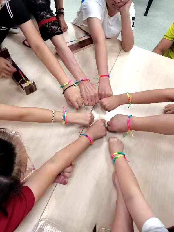 端午节的五彩绳不用再去购买了,王府的娃娃们自己会编,认真学习,努力拉线,成功了,一条条五彩绳带在手腕上,可爱的笑脸上都挂着满满的自信与骄傲!