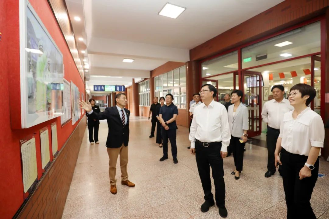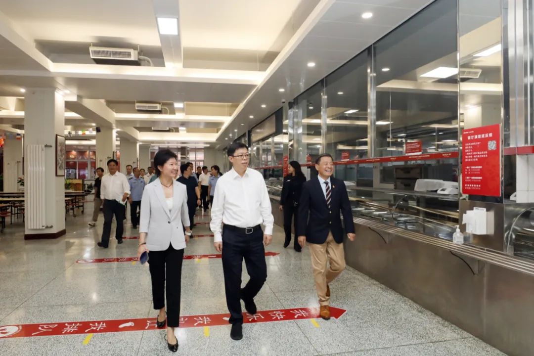 支现伟区长一行实地察看了学校图书馆、体育场馆、多功能科学实验室、学生活动中心、教职工食堂等场所,详细了解学校办学历史、教育教学体系、特色课程、师资队伍建设、学生发展、校园安全等情况。在教职工食堂,区长详细询问了食堂的食品安全保障措施以及教职工的就餐体验,强调要保障师生饮食安全和营养健康。