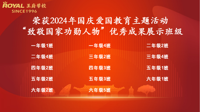 还有14个班集体在2024国庆爱国教育主题活动“致敬国家功勋人物”成果展示中,荣获优秀展示奖。