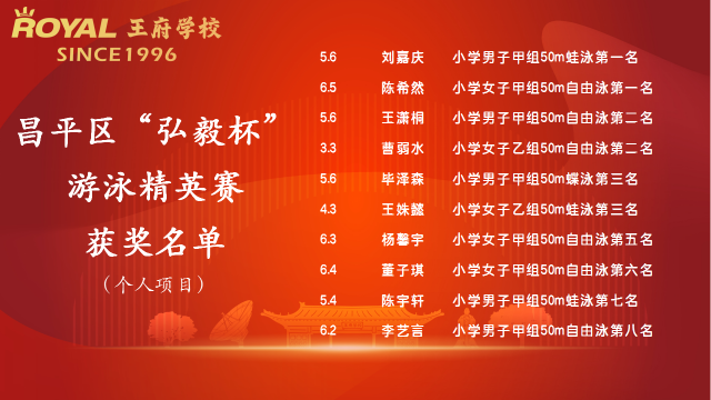丁梓蘅、谭笑等12位同学凭借长期以来的优异表现,荣获2023-2024年度昌平区“三好学生”荣誉称号;我校五年级四班、六年级五班分别获得2023-2024年度昌平区“先进班集体”荣誉称号;校领导为在昌平区“弘毅杯”游泳精英赛上取得佳绩的游泳健儿们颁奖,鼓励同学们在体育项目训练中向奥运健儿学习,奋勇拼搏。