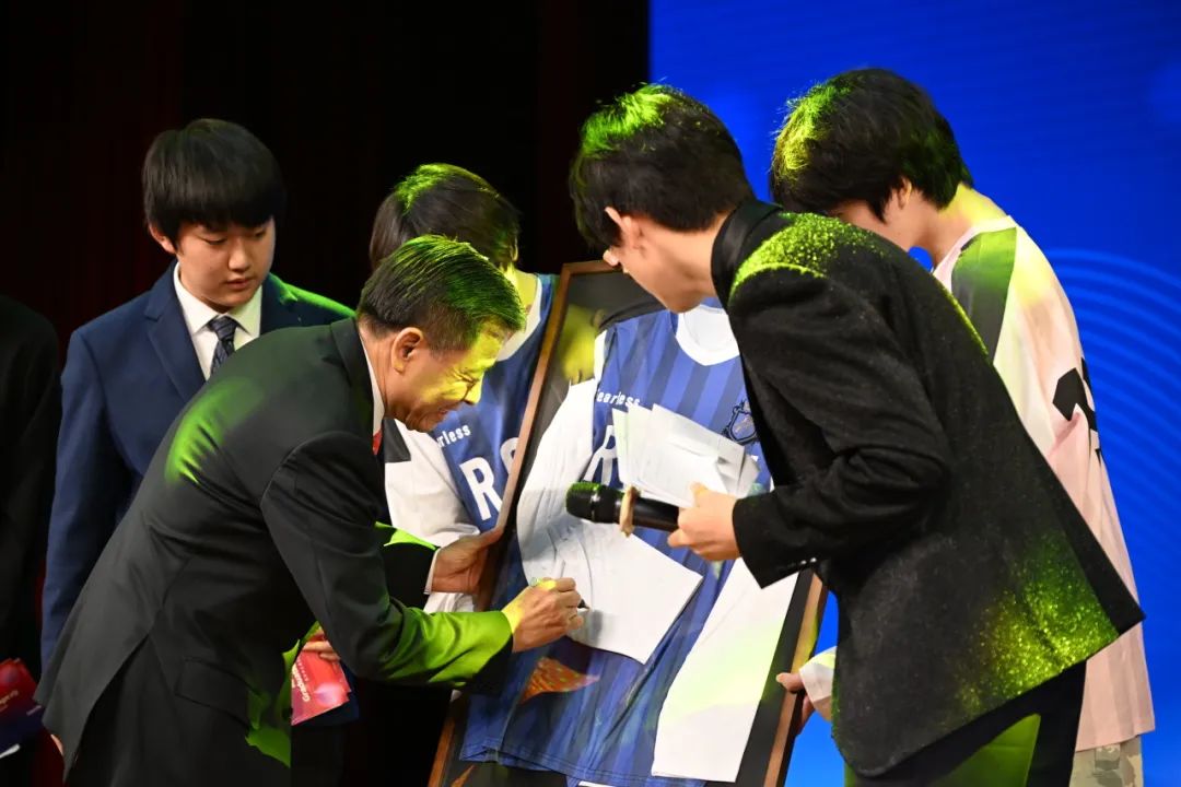 ▲北京王府学校总校长王广发先生在献礼服装签名