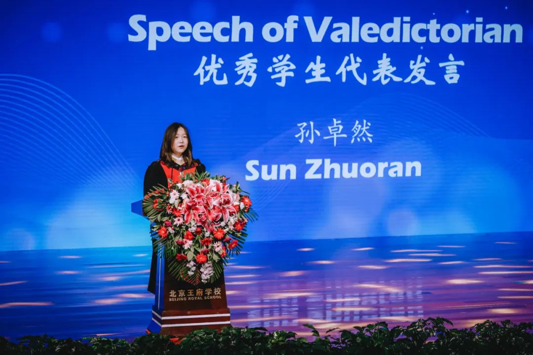 一身学士服,站在讲台前的孙卓然讲述着这三年来自己的改变。从2021年进入学校、进入学生会,从一个小干事到学生会主席,她不仅在校园活动中闪闪发光,在学术上也是频频获奖,如今更是凭借优异的成绩直升高中部,她用自己的优秀向全体老师、家长、学校诠释了青春最好的表达。