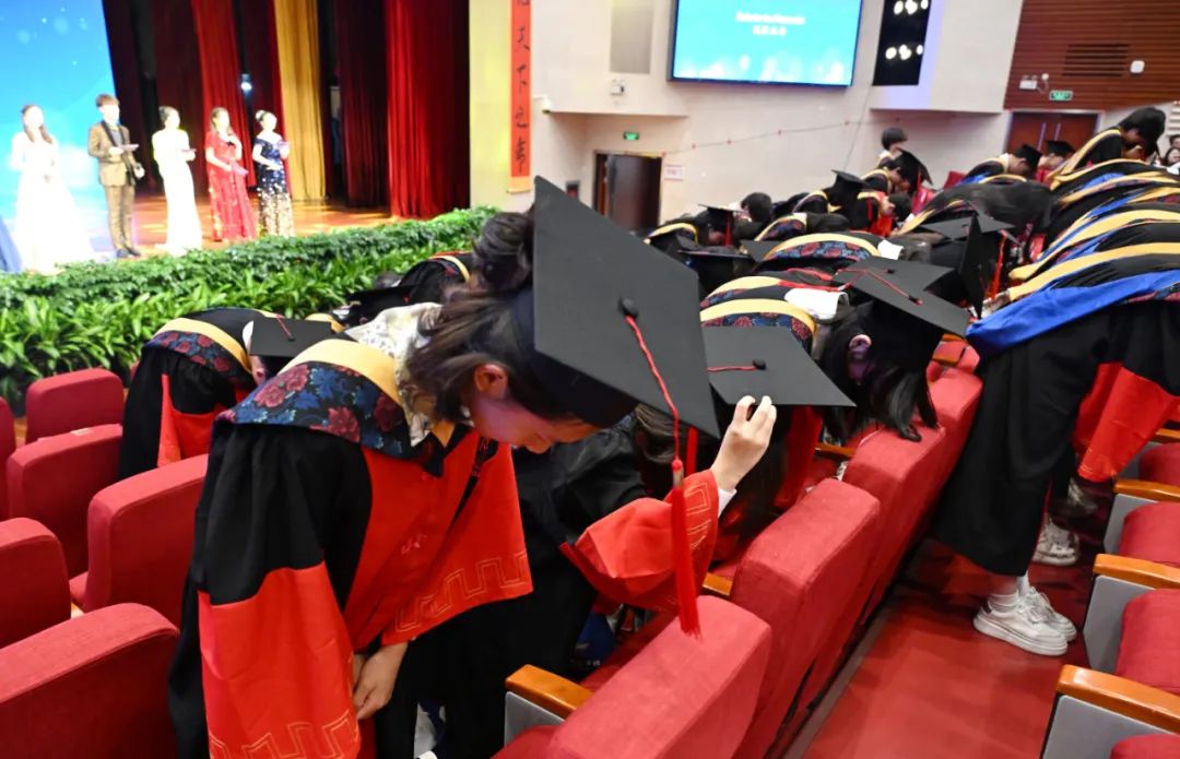母爱是船,载着我们从少年走向成熟,父爱是海,给了我们安稳的港湾。毕业之际,毕业生们也向朝朝暮暮陪伴多年的父母深深鞠躬,感谢他们多年的养育与呵护。