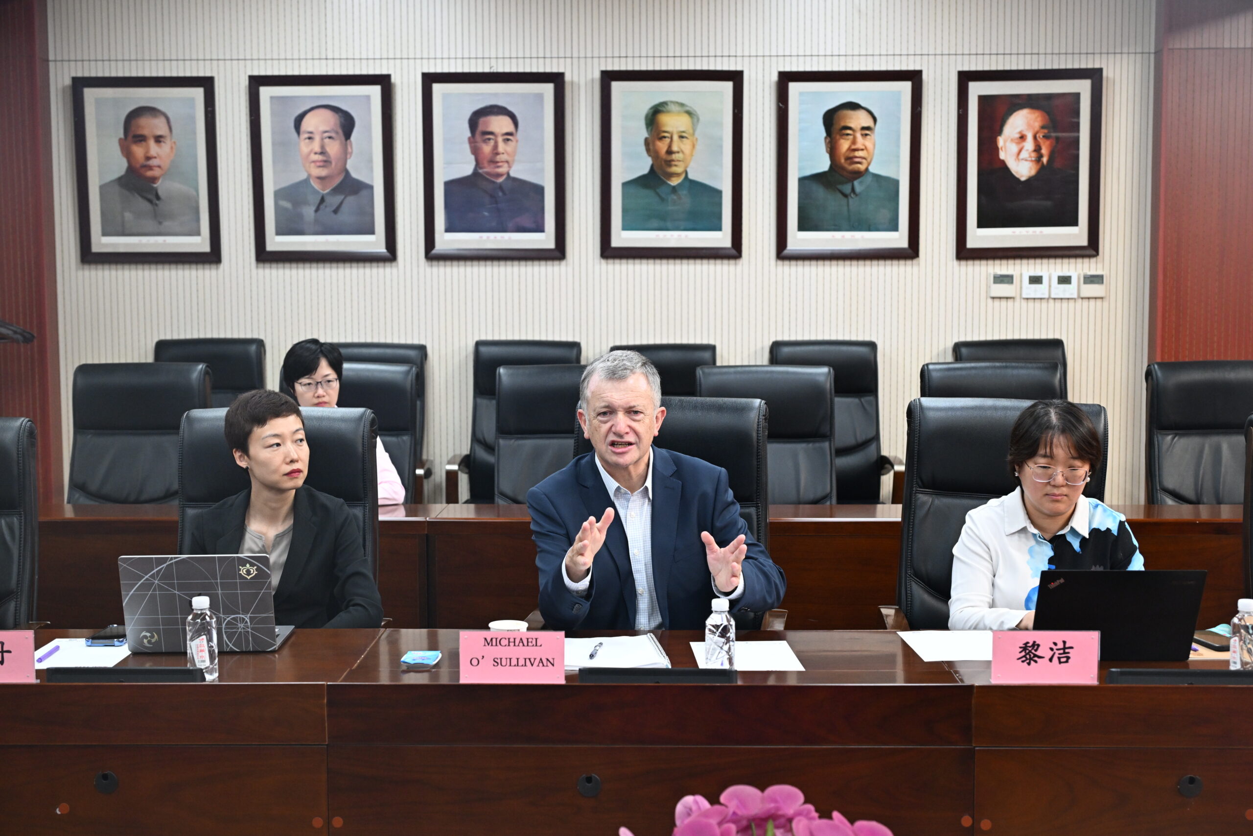 ▲9月中旬,国际教育资深专家迈克尔·奥沙利文先生(居中)来校交流并做主题讲座
